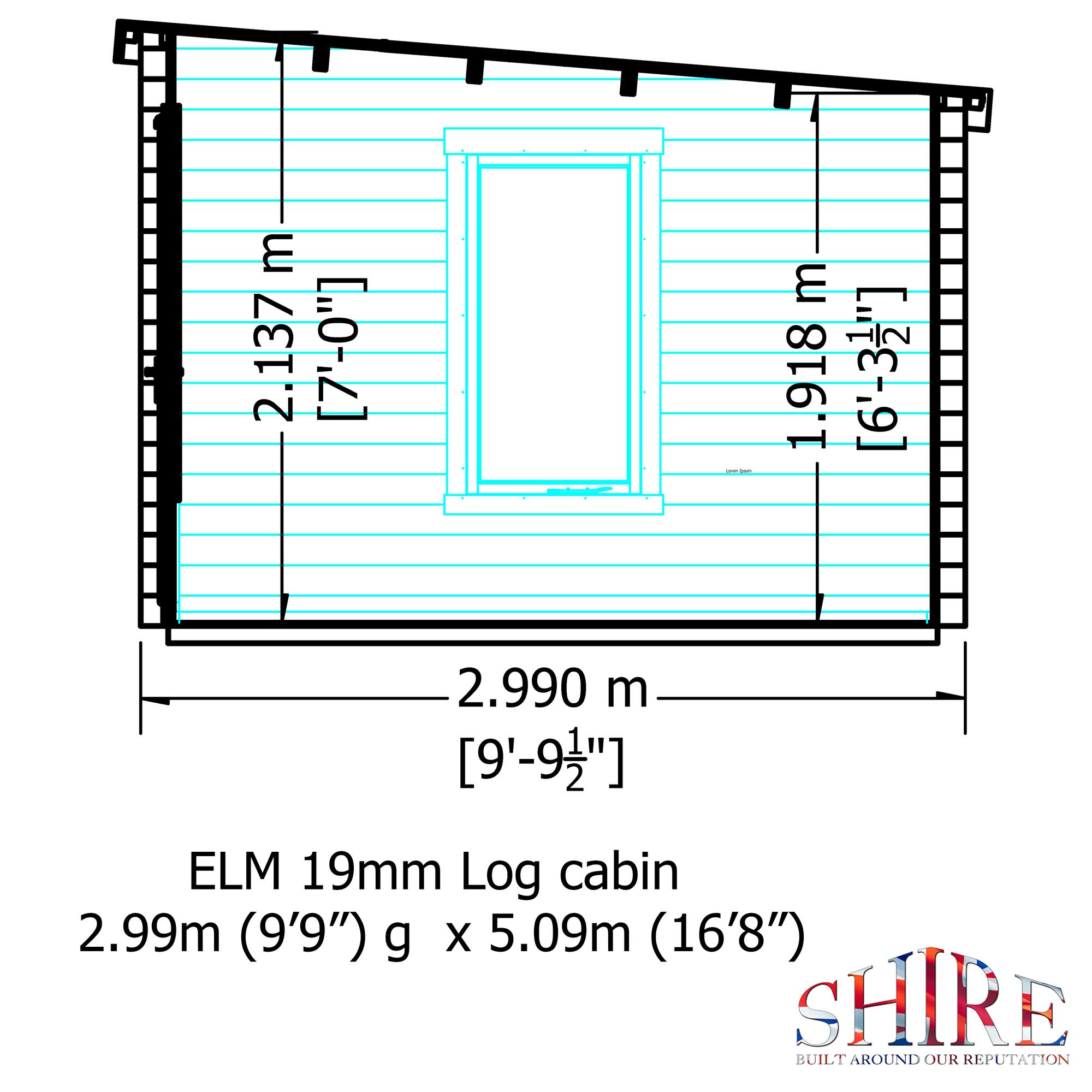 17×11 Shire Elm Pent Log Cabin with Side Storage Shed