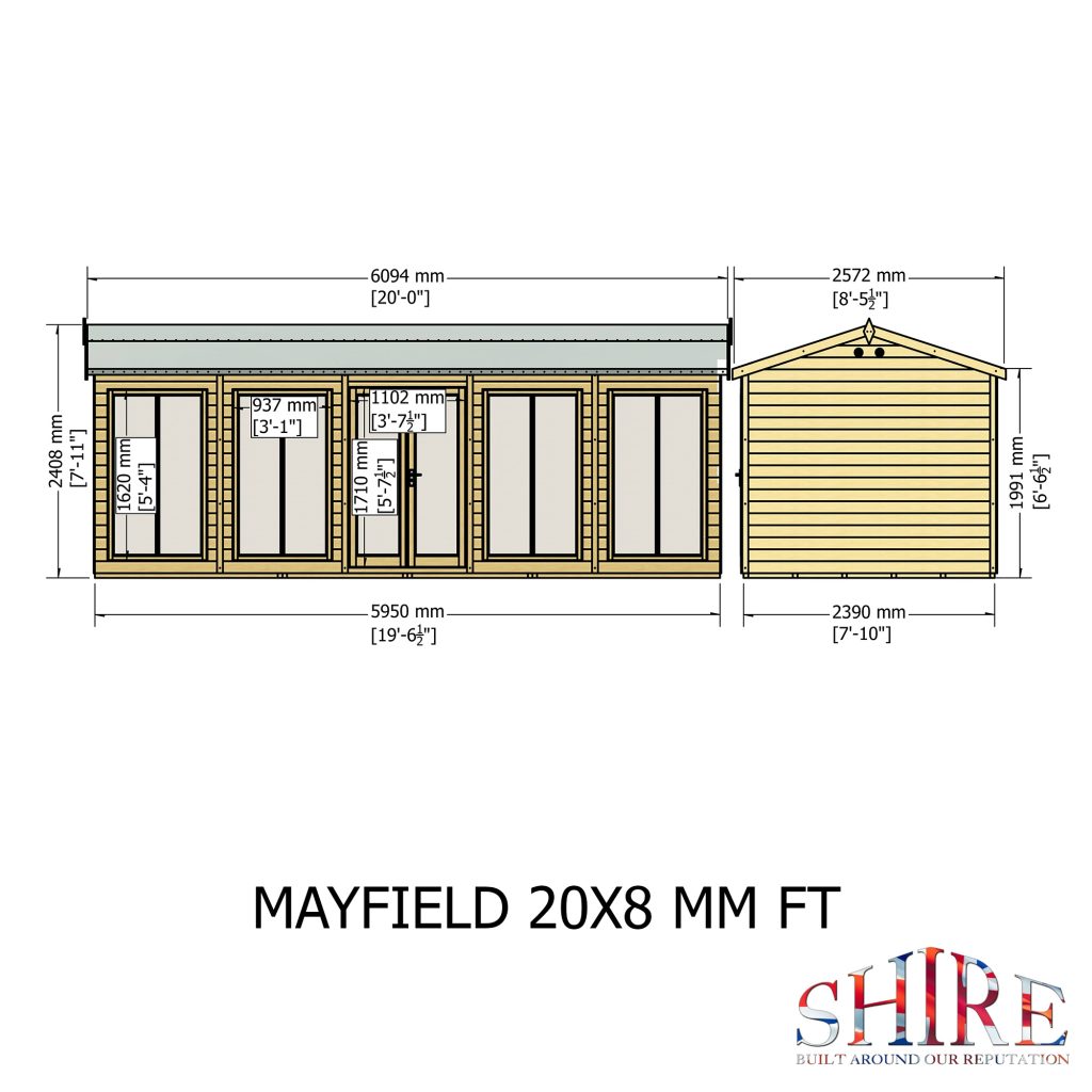 20 x 8 Shire Mayfield Reverse Apex Summerhouse Shiplap Double Doors