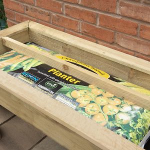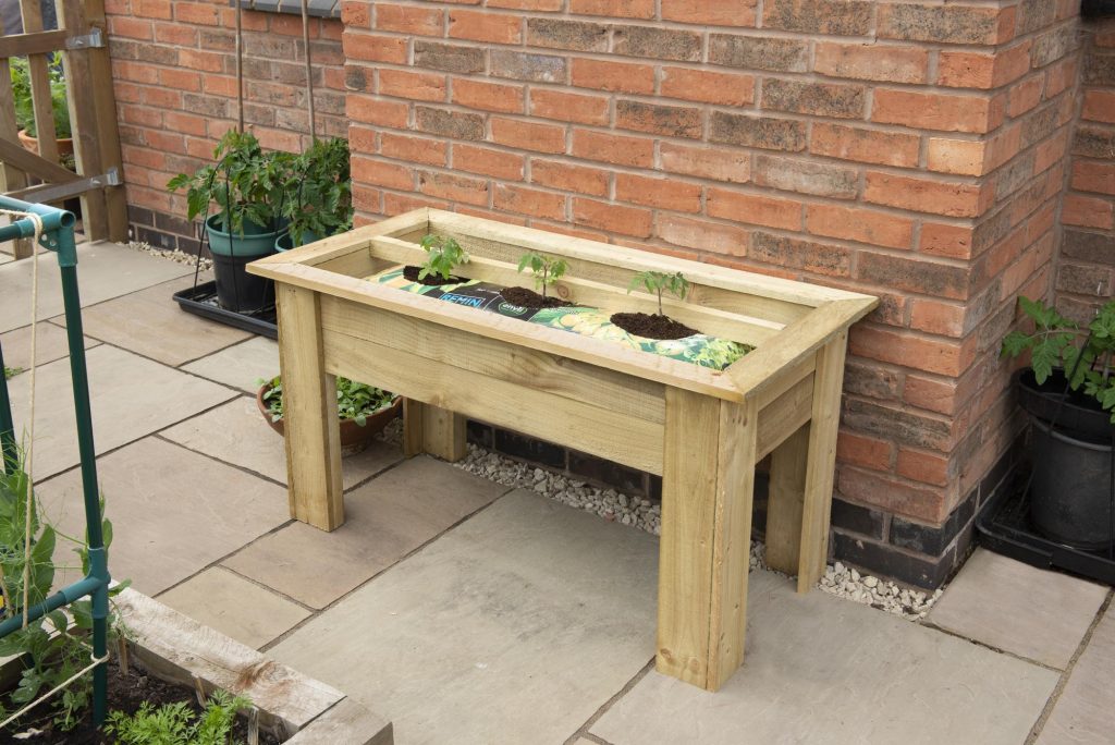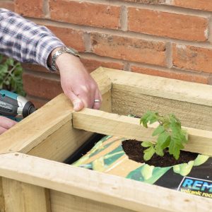 The wood is pressure treated to protect against rot and comes with a 15 year ant-rot guarantee. It is supplied with screws and instructions for assembly. Grow bag tray and grow bag not included.