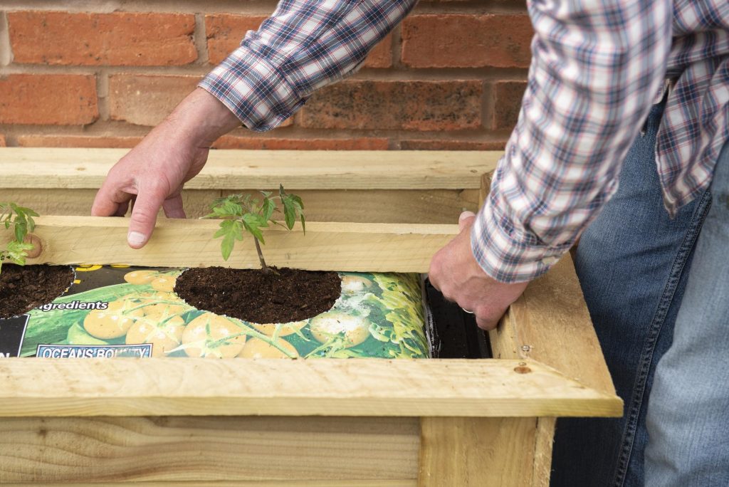 It is designed around the standard 100cm long x 40cm wide grow bag tray and grow bag. The container makes the planting, growing, tending and cropping of tomatoes easier by raising everything up to a more convenient height. The container features a convenient cross-bar for securing support canes to and the sides are the perfect height to hide the unsightly grow bag, making your tomatoes an attractive feature in your garden. An additional benefit of the container is that it will reduce the staining that comes with having grow bags on your patio, particularly if you line the base.