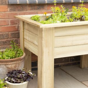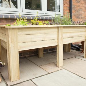 - The 1.8m Large Kitchen Garden Planter from Forest Garden is designed with the perfect planting depth for growing herbs and salads plus the attractive design means it will look great in any garden setting. This generous sized planter has an internal planting length of 165cm, width of 55cm and depth of 29cm. The planter raises the plants up to a convenient height of around 70 - 90cm making it easy to crop and tend to them. There is also plenty of room to include all the herbs you are likely to need, including thyme, sage, parsley and chives, as well as companion plants and salad crops like lettuce and pak-choi. Just remember to plant any mint in a pot to prevent it from spreading. The planter is also ideal for creating a display of decorative flowering plants. Supplied with instructions and screws for assembly, this Kitchen Garden Planter is very quick and easy to assemble, needing just 3 screws in each leg and 4 in each corner to secure the top surround. We recommend lining the planter with a suitable porous membrane before filling with compost, especially if you are using to grow edible produce. Holds approximately 271 litres of compost. Manufactured in the UK from UK grown FSC® certified timber which has been pressure treated to protect against rot and has a 15 year anti-rot guarantee. If using to grow food produce we recommend lining the bed/planter with a membrane before adding the soil.
