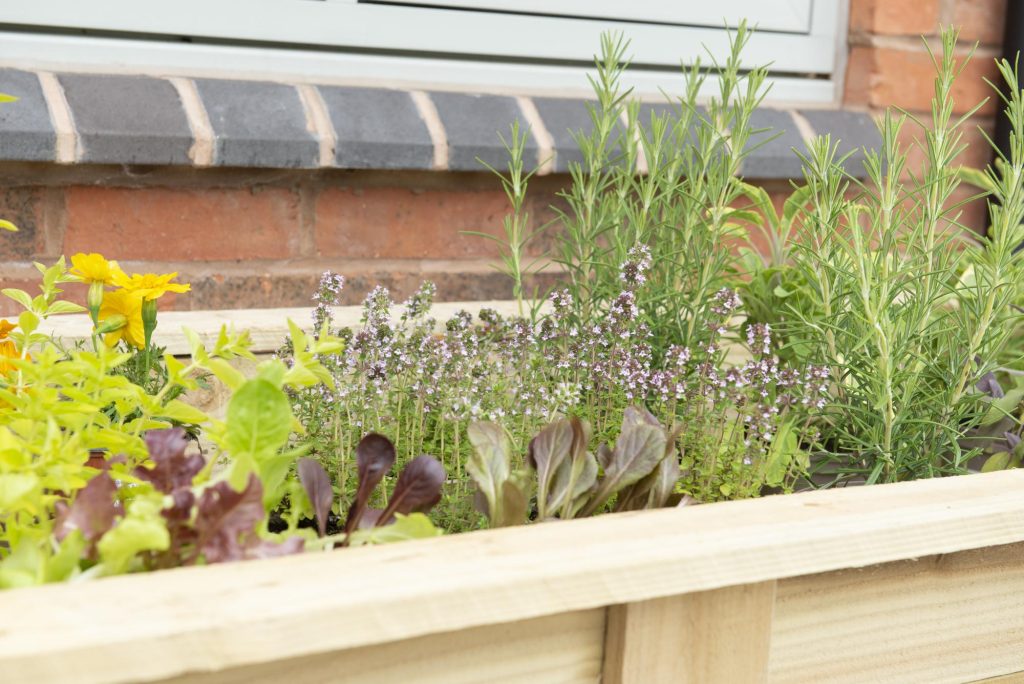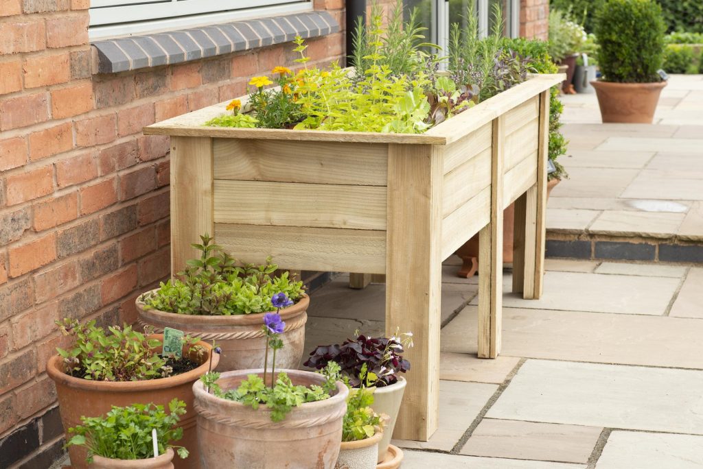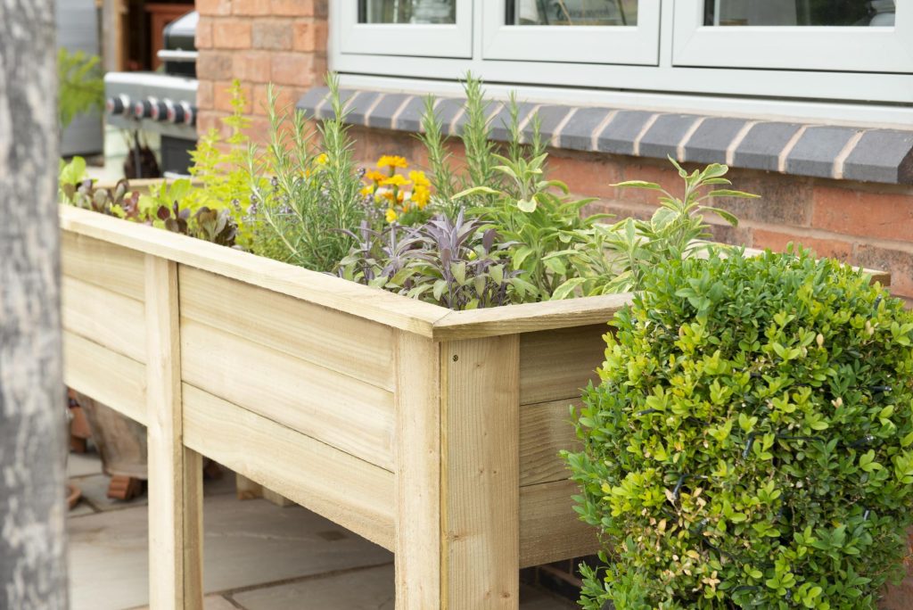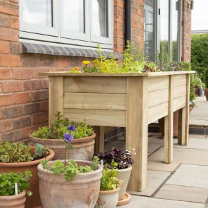 This generous sized planter has an internal planting length of 165cm, width of 55cm and depth of 29cm. The planter raises the plants up to a convenient height of around 70 – 90cm making it easy to crop and tend to them. There is also plenty of room to include all the herbs you are likely to need, including thyme, sage, parsley and chives, as well as companion plants and salad crops like lettuce and pak-choi. Just remember to plant any mint in a pot to prevent it from spreading. The planter is also ideal for creating a display of decorative flowering plants.