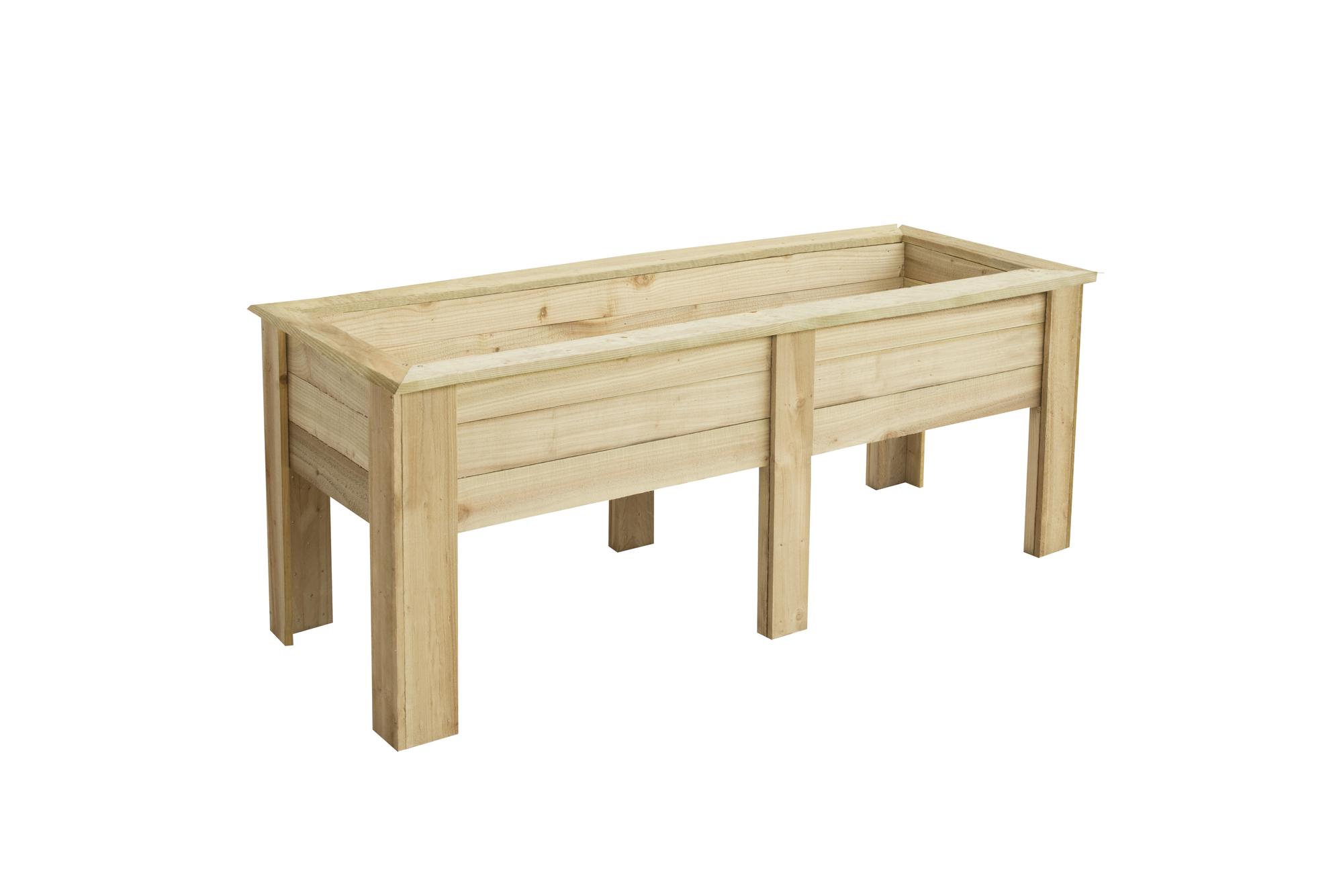 - The 1.8m Large Kitchen Garden Planter from Forest Garden is designed with the perfect planting depth for growing herbs and salads plus the attractive design means it will look great in any garden setting. This generous sized planter has an internal planting length of 165cm, width of 55cm and depth of 29cm. The planter raises the plants up to a convenient height of around 70 - 90cm making it easy to crop and tend to them. There is also plenty of room to include all the herbs you are likely to need, including thyme, sage, parsley and chives, as well as companion plants and salad crops like lettuce and pak-choi. Just remember to plant any mint in a pot to prevent it from spreading. The planter is also ideal for creating a display of decorative flowering plants. Supplied with instructions and screws for assembly, this Kitchen Garden Planter is very quick and easy to assemble, needing just 3 screws in each leg and 4 in each corner to secure the top surround. We recommend lining the planter with a suitable porous membrane before filling with compost, especially if you are using to grow edible produce. Holds approximately 271 litres of compost. Manufactured in the UK from UK grown FSC® certified timber which has been pressure treated to protect against rot and has a 15 year anti-rot guarantee. If using to grow food produce we recommend lining the bed/planter with a membrane before adding the soil.