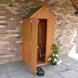 The Overlap Tall Tool Store is ideal for storing all your garden tools and other household items. You will always find a use for this handy store. It is constructed on 34mm square framing and clad in high grade, FSC approved pine boards for that rustic effect that blends so well into any garden. The roof and floor are solid sheet OSB with the roof externally completed with green mineral felt which is provided. (Imperial dimensions are approximate to the nearest foot; please refer to the exact metric dimensions in the data given)