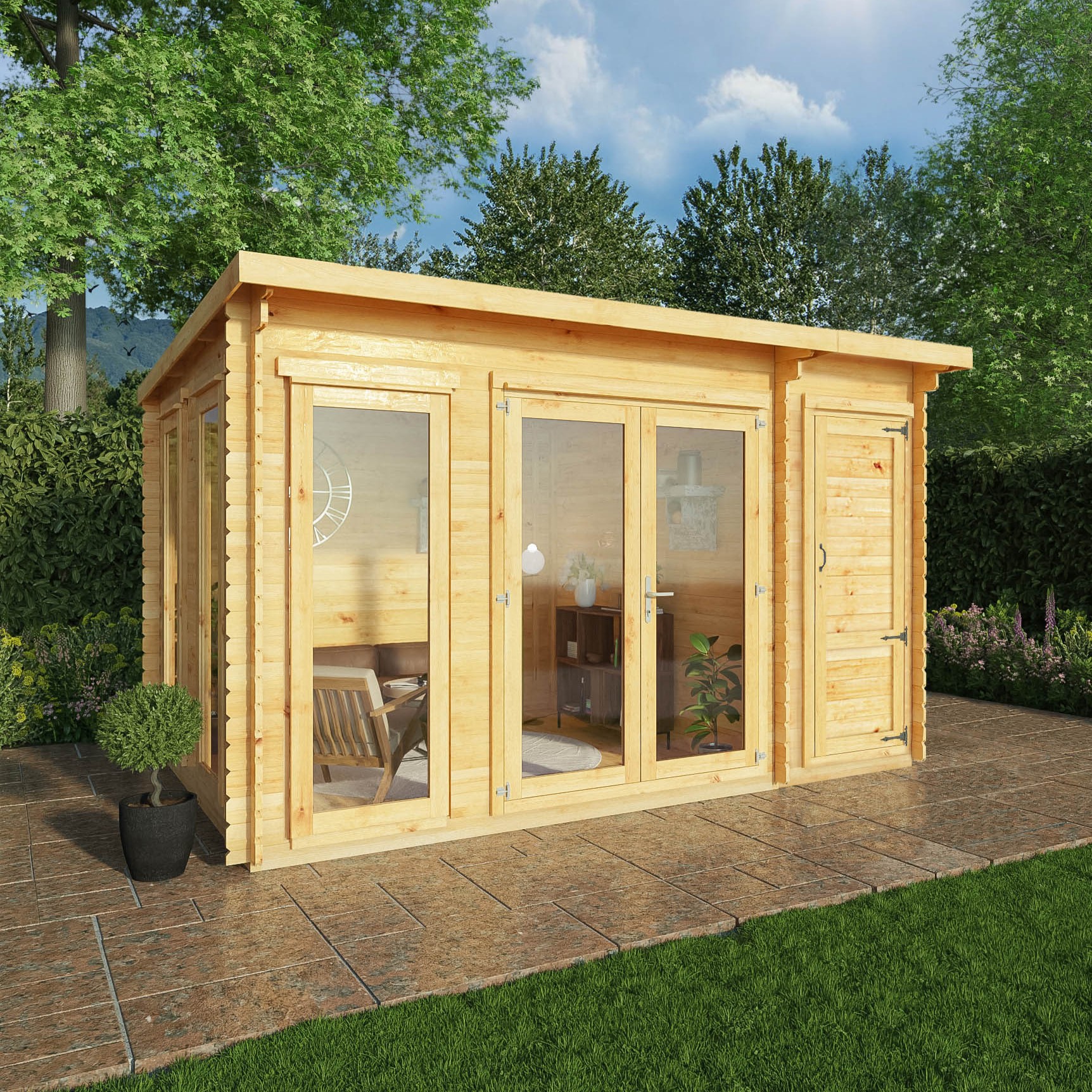 With three full length windows and fully glazed double doors, the Studio Pent is the perfect place to relax whilst watching the world go by. Contemporary yet timeless ironmongery provides a stylish finishing touch to both the interior and exterior of your new garden escape.