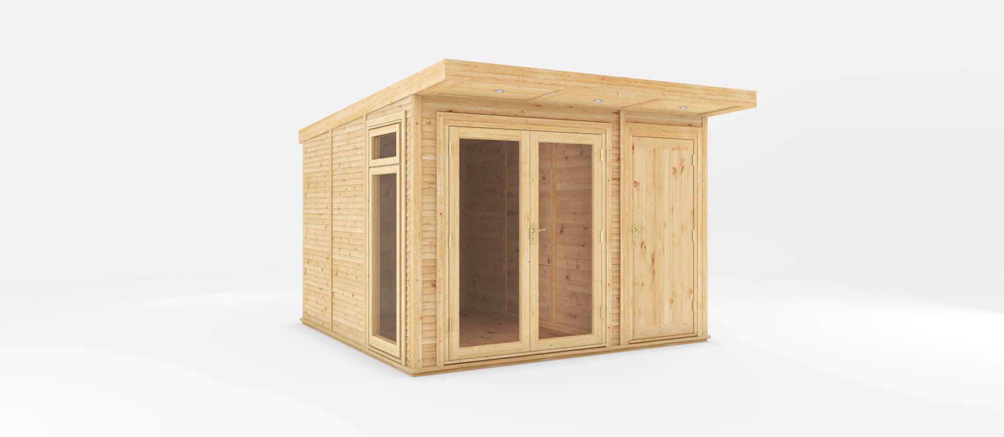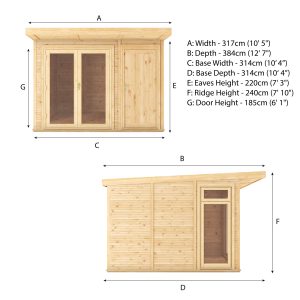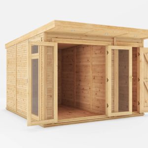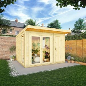 The 72mm thick double skinned walls, double glazed windows and fully insulated roof, floor and walls mean this Insulated Garden Room with Side Shed is ideal for all year-round use.