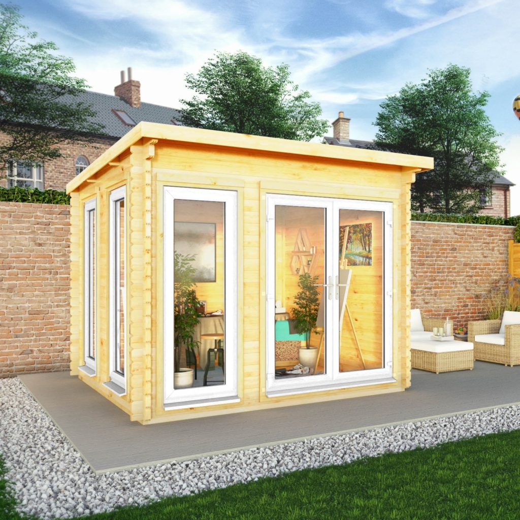 3m x 3m Studio Pent Log Cabin – 44mm – (UPVC Windows & Doors)