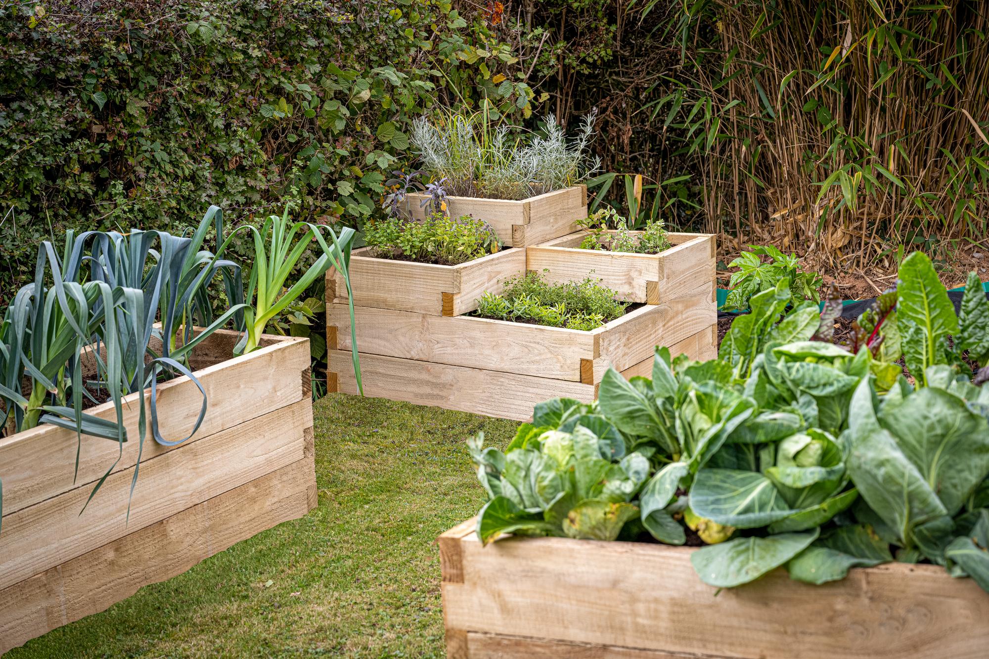 - The Caledonian Tiered Raised Bed from Forest is ideal for using as a display for plants and flowers. It could also be used as a stylish kitchen garden if you are keen to grow your own produce but don’t have the space for a full allotment. This design looks great positioned in an unused corner of your garden, it's attractive tiered design makes a great colourful display. To manufacture these planters we have used timber that has been Pressure Treated to give it a 15 year guarantee against rot and fungal decay. The Caledonian Tiered Planter can hold approximately 330L of compost to give plenty of room for a variety of plants, flowers, vegetables or herbs. This planter's frame comes pre-notched so is quick and easy to assemble. Delivered to you flat packed with easy to follow step-by-step instructions and all the fixings you need for a simple build. Other sizes and styles are also available in the Caledonian range. If using to grow food produce we recommend lining the bed/planter with a membrane before adding the soil.