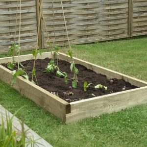 - The Caledonian Large Raised Bed offers a quick and easy way of establishing a useful bed for growing a variety of vegetables or other plants in a narrow space. This model is 90cm wide x 180cm long and is one of a range of three sizes and shapes of raised bed that can be mixed and matched to suit your growing space. The rasied bed is made using strong 40mm thick timbers that are 140mm deep and have been conveniently notched at the ends so they can be easily assembled together with neat and attractive half-lap joints at each corner. All that is required to put the bed together is 4 screws, one in each corner. The screws are supplied with the bed, along with instructions. The wood is pressure treated to protect against rot and comes with a 15 year guarantee. Other size options available are 90cm x 90cm and 180cm x 45cm. If using to grow food produce we recommend lining the bed/planter with a membrane before adding the soil.