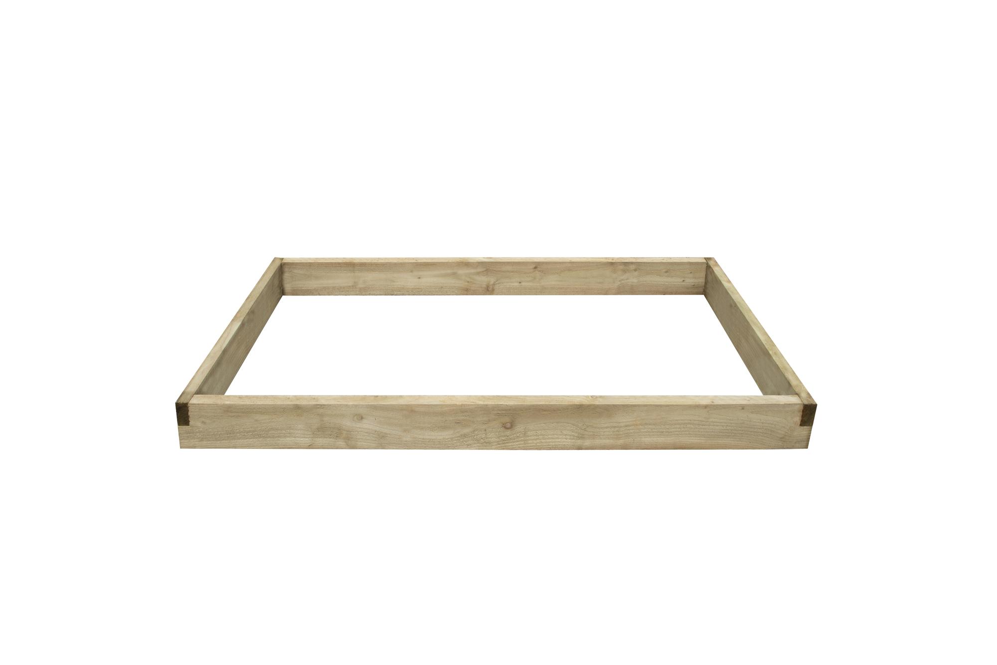 - The Caledonian Large Raised Bed offers a quick and easy way of establishing a useful bed for growing a variety of vegetables or other plants in a narrow space. This model is 90cm wide x 180cm long and is one of a range of three sizes and shapes of raised bed that can be mixed and matched to suit your growing space. The rasied bed is made using strong 40mm thick timbers that are 140mm deep and have been conveniently notched at the ends so they can be easily assembled together with neat and attractive half-lap joints at each corner. All that is required to put the bed together is 4 screws, one in each corner. The screws are supplied with the bed, along with instructions. The wood is pressure treated to protect against rot and comes with a 15 year guarantee. Other size options available are 90cm x 90cm and 180cm x 45cm. If using to grow food produce we recommend lining the bed/planter with a membrane before adding the soil.