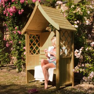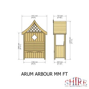 With its shaped facia, overlap timber roof and attractive trellis detail, the Arum Arbour sits well in any garden or patio. A beautiful feature to place in a special spot to sit and take a moment. It is manufactured from high grade, slow grown, FSC approved, northern European pine which has been pressure treated to protect it from rot and insect attack for many years. (Imperial dimensions are approximate to the nearest foot; please refer to the exact metric dimensions in the data given) Supplied pressure treated for long life, painted model shown is for illustration only.