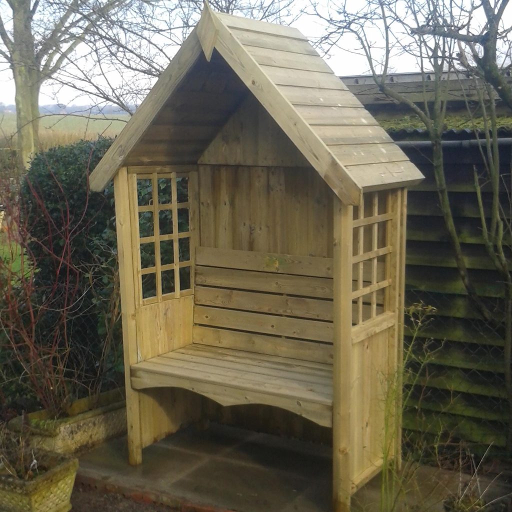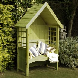 The Mimosa Arbour is a beautiful garden feature with a timber clad feature roof and integral seating with sloping back to add to your comfort. Constructed from top quality pressure treated timber for a longer life over a sturdy 34 mm square frame. The Mimosa provides a perfect spot for you to relax and admire your garden. Easy to assemble, the arbour makes a wonderful addition to your garden.