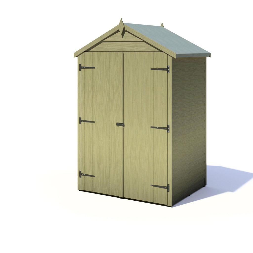 4 x 3 Shire Pressure Treated Apex Shed Double Doors Windowless