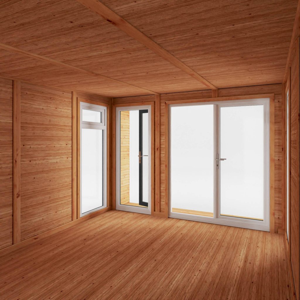 Part of our premium Sherwood range, named after local landmarks, the Creswell boasts premium features as standard. Eco-quilt multi-foil insulation lines the walls, roof, and floor, offering the equivalent insulation of 100mm glass wool. Combined with double-glazed windows and French doors, this ensures a cozy interior regardless of external conditions. The walls feature a double-skinned design with easily removable internal panels, facilitating the installation of electrical components—a perfect solution for organizing office cables. Furthermore, the roof is topped with a durable waterproof rubber membrane designed to last for 50 years.