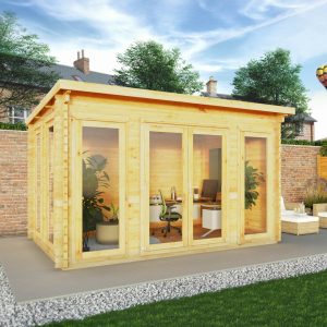 4m x 3m Studio Pent Log Cabin – 34mm – Mercia