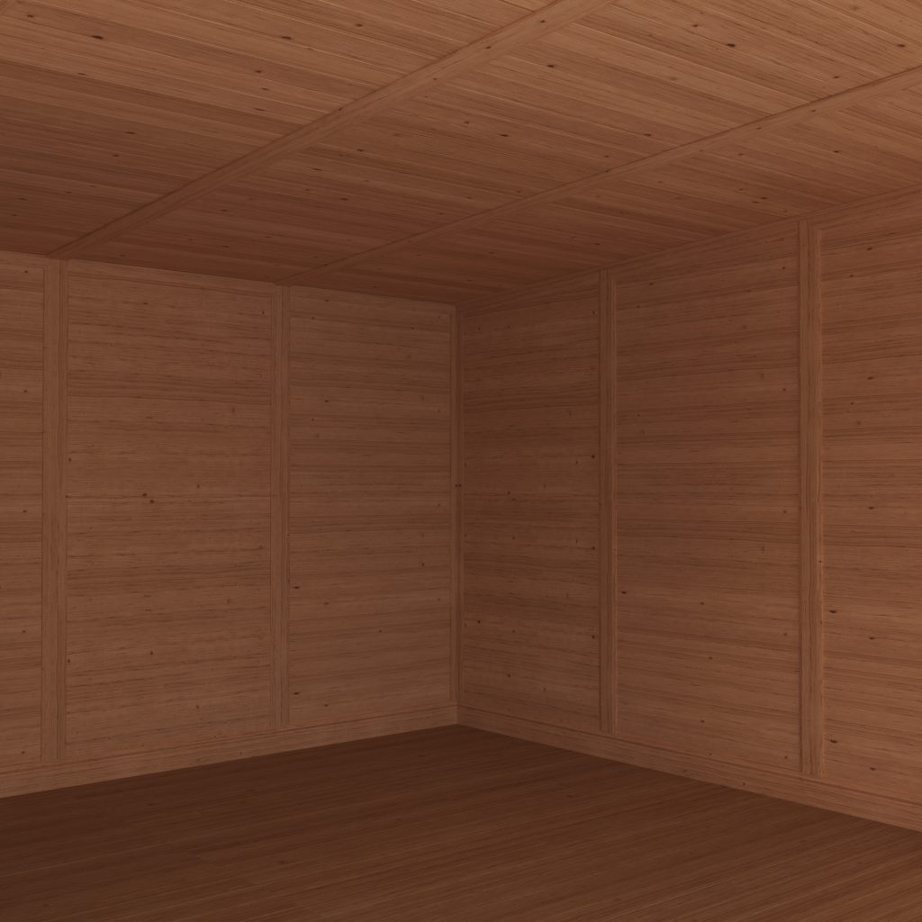 This 4m x 4m Insulated Garden Room is an incredibly versatile building that can be used all year round thanks to the Eco-quilt insulation that features in the walls, roof and floor. The walls are consist of three layers, a 16mm tongue and groove outer layer, a 44mm gap in the middle that is filled with insulation, and a 12mm tongue and groove inner wall. The thick walls mean heat is trapped in and any entering noise from the outside is greatly reduced.