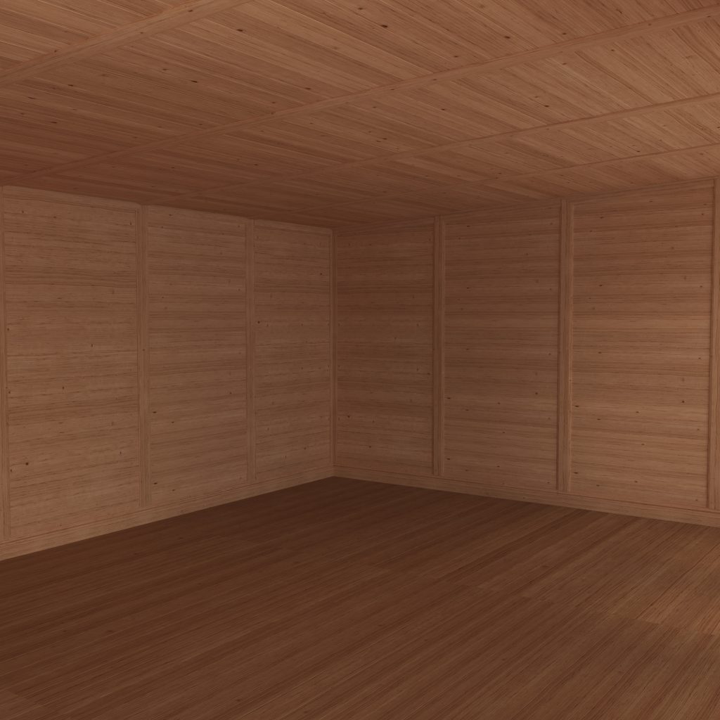 This 6m x 4m Insulated Garden Room is an incredibly versatile building that can be used all year round thanks to the Eco-quilt insulation that features in the walls, roof and floor. The walls are consist of three layers, a 16mm tongue and groove outer layer, a 44mm gap in the middle that is filled with insulation, and a 12mm tongue and groove inner wall. The thick walls mean heat is trapped in and any entering noise from the outside is greatly reduced.