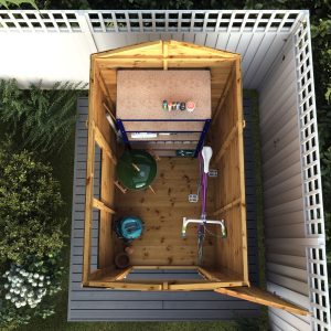 A shatterproof Styrene glazed window provides this shed with a bright interior. That is ideal for locating your stored items.