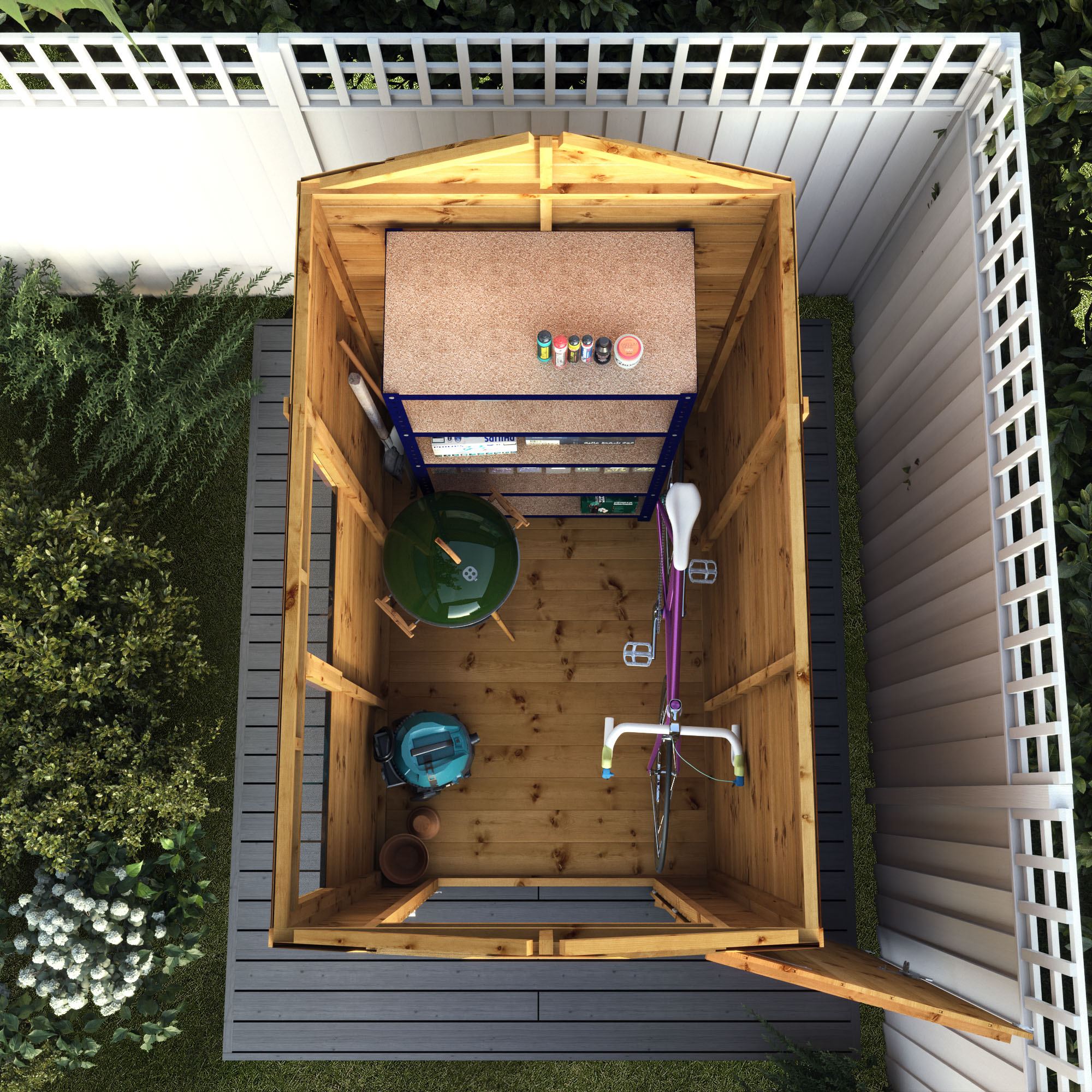 A shatterproof Styrene glazed window provides this shed with a bright interior. That is ideal for locating your stored items.