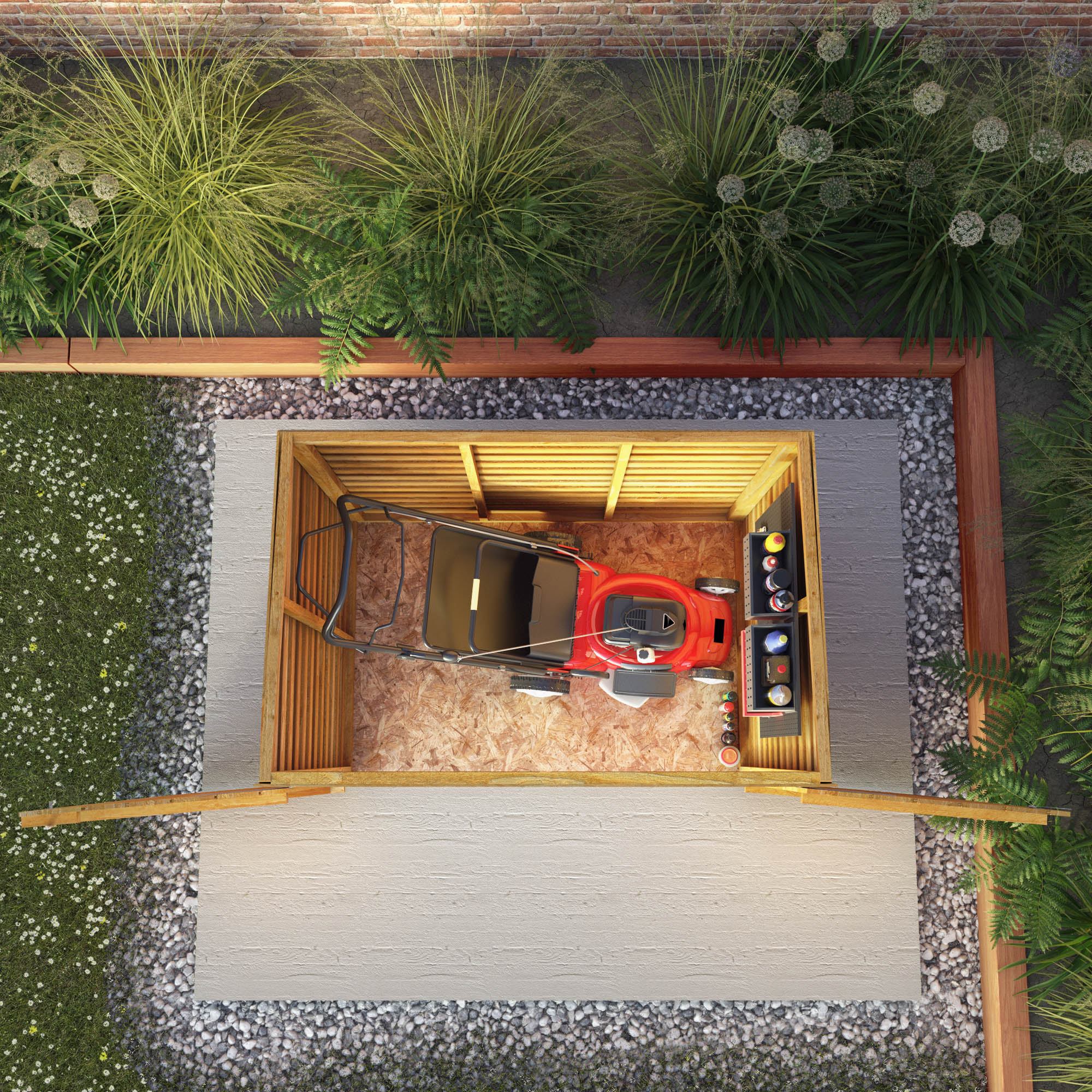 The 3 x 5 Overlap Wooden Mower Store is the perfect for solution for households looking for an attractive and secure spot to store the lawn mower. Large double doors make storing and accessing your lawn mower simple and easy. Made in the UK using ethically sourced, FSC certified timber, this store is great for those looking for secure storage that offers excellent value.