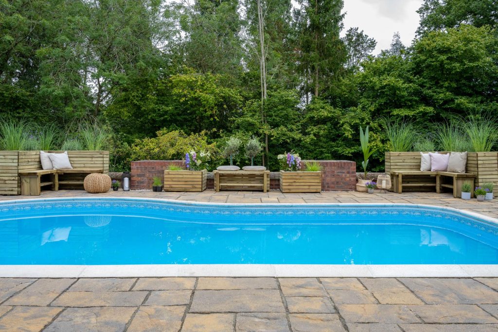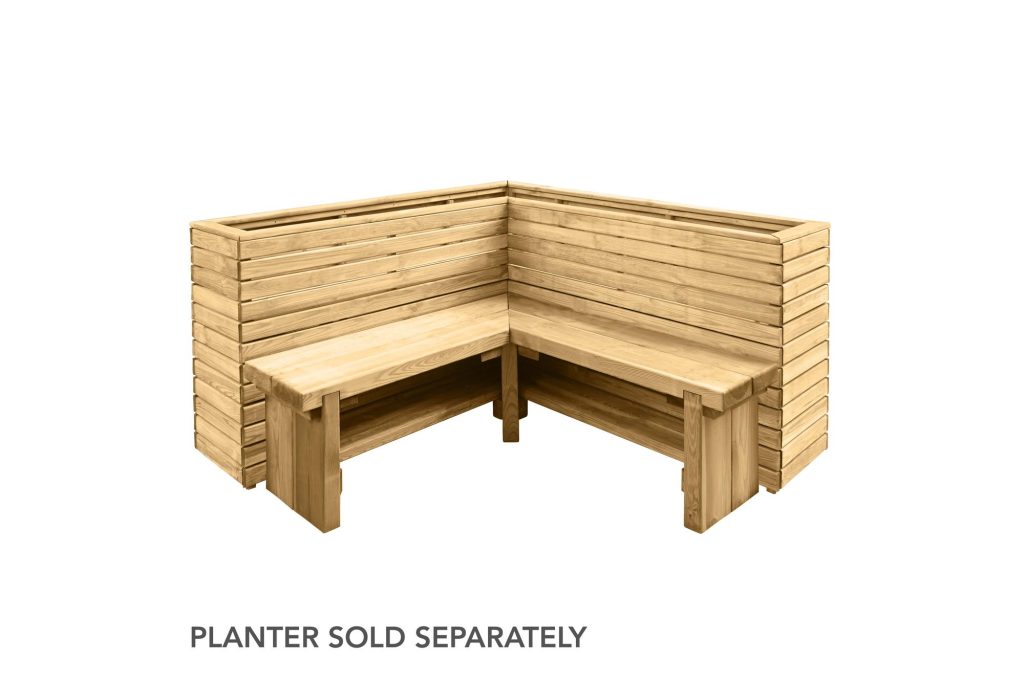 The planter can be purchased with a Double Sleeper Corner bench that is designed to fit perfectly against the planter.