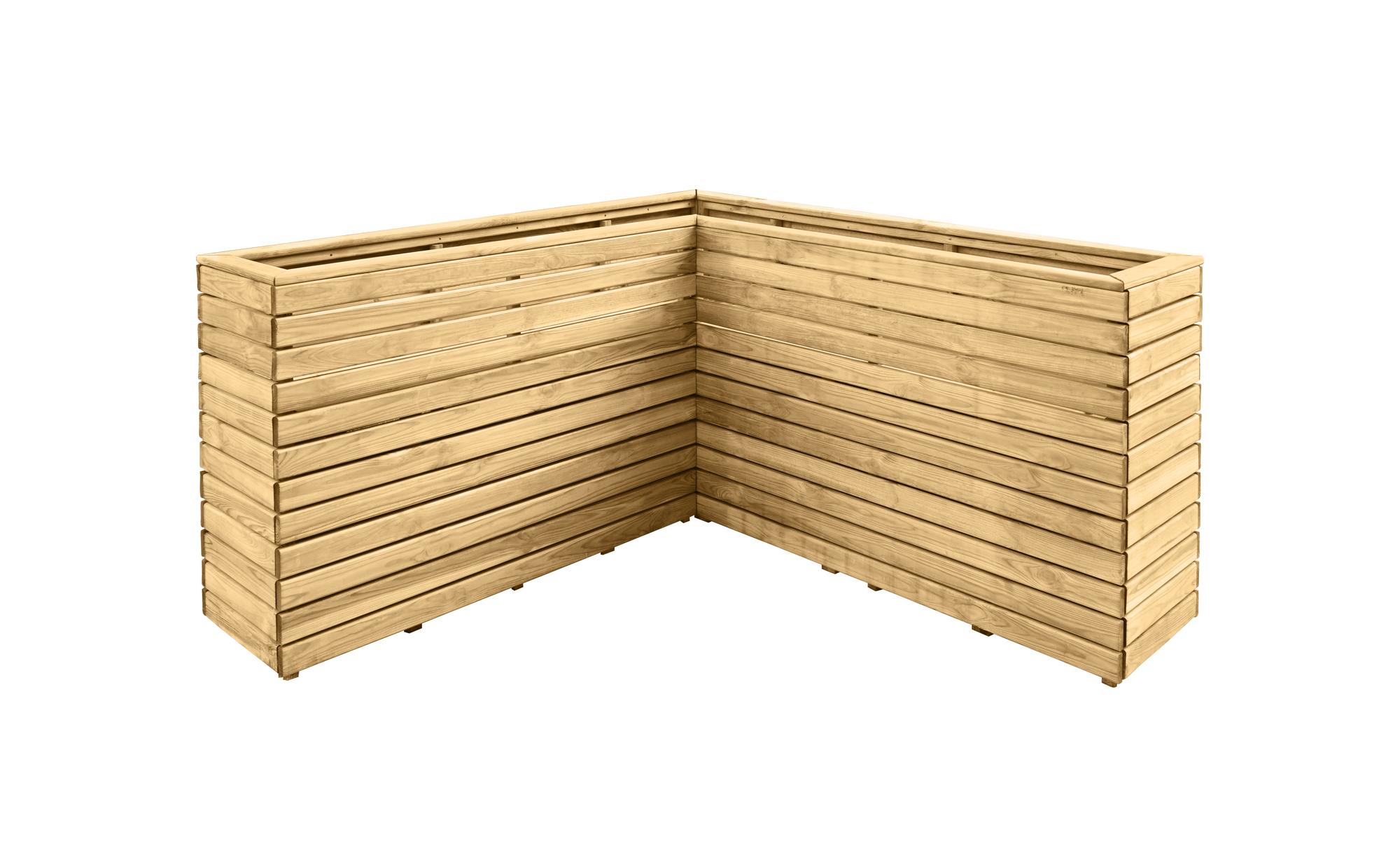 - Transform an unloved corner of your garden with our contemporary style Linear Corner Planter. Ideally sized for a variety of decorative shrubs such as box, standards, miniature firs and will look beautiful when filled with flowering plants. The planter has a modern look, with strong horizontal lines and natural timber colouring, it’s sure to add interest and structure to any garden. This Linear Corner Planter will add a focal point in any garden corner, or because of its height, is an ideal way of decoratively screening off an area of your garden. The planter can be purchased with a Double Sleeper Corner bench that is designed to fit perfectly against the planter. Choose a planter – or more than one – that will suit your garden size and style from the Linear range: square, double, long and tall. For a superior finish, the timber used is smooth-planed and Pressure Treated with a preservative to protect it against rot. The planter is kept off the ground by Pressure Treated battens. The planters each come with a porous lining to keep soil and moisture in and ensure your plants thrive.
