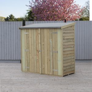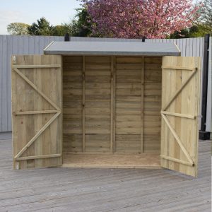 This pressure treated 6′ x 3′ Overlap Double Door shed is distinguished from many of its competitors because of the wide double doors in the 6′ gable and the generous eaves height. This means that there is easy access to the entire space. It is manufactured from high grade, slow grown, FSC approved, European pine cladding boards over 34mm square framing.