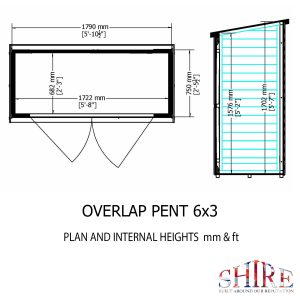 6 x 3 Shire Pressure Treated Pent Shed Double Doors Windowless