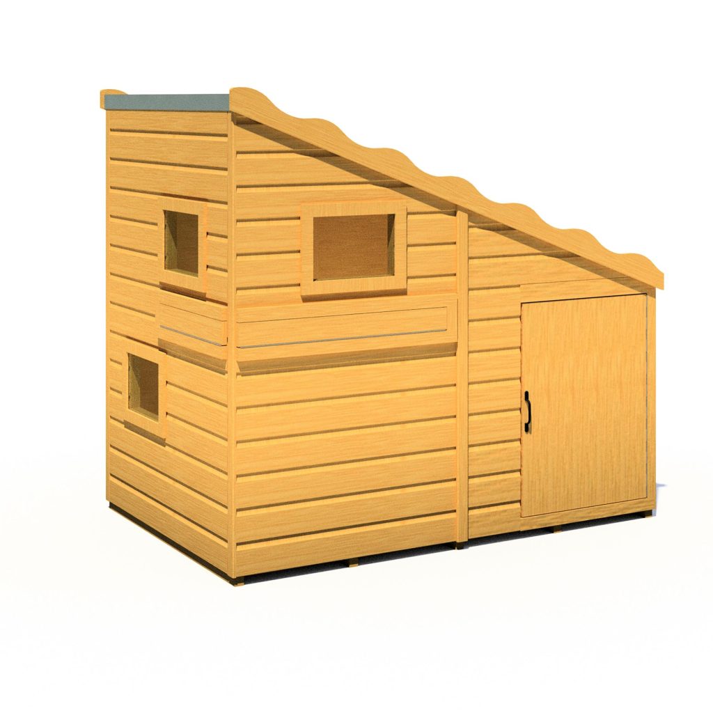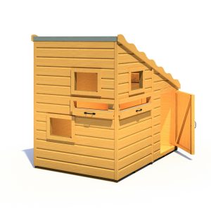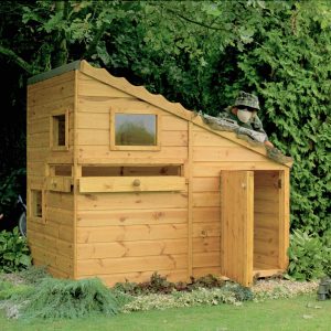 Wow, Wow, Wow!! Surely a dream den for all boys and girls. The Command Post is the perfect hideout from which to command the garden. It even has 4 opening ports for those all important water guns so look out!! This will encourage any child off their games console and outside to play!! It is fully CE certified and complies with BS EN71 for the safety of your children. The door is fitted with a full length piano high to prevent finger traps and the windows are glazed with Perspex. It is manufactured in T&G (shiplap) from high grade, slow grown, FSC approved, northern European pine shiplap boards. The playhouse is supplied with a dip treated base coat preservative ready for top coating by you immediately on installation, once you’ve agreed on a colour! The floor of the playhouse is tongue and groove timber and the OSB roof is covered with green mineral felt for protection from the weather. All fixings, roof felt and assembly instructions are supplied. The Command Post is a real winner!