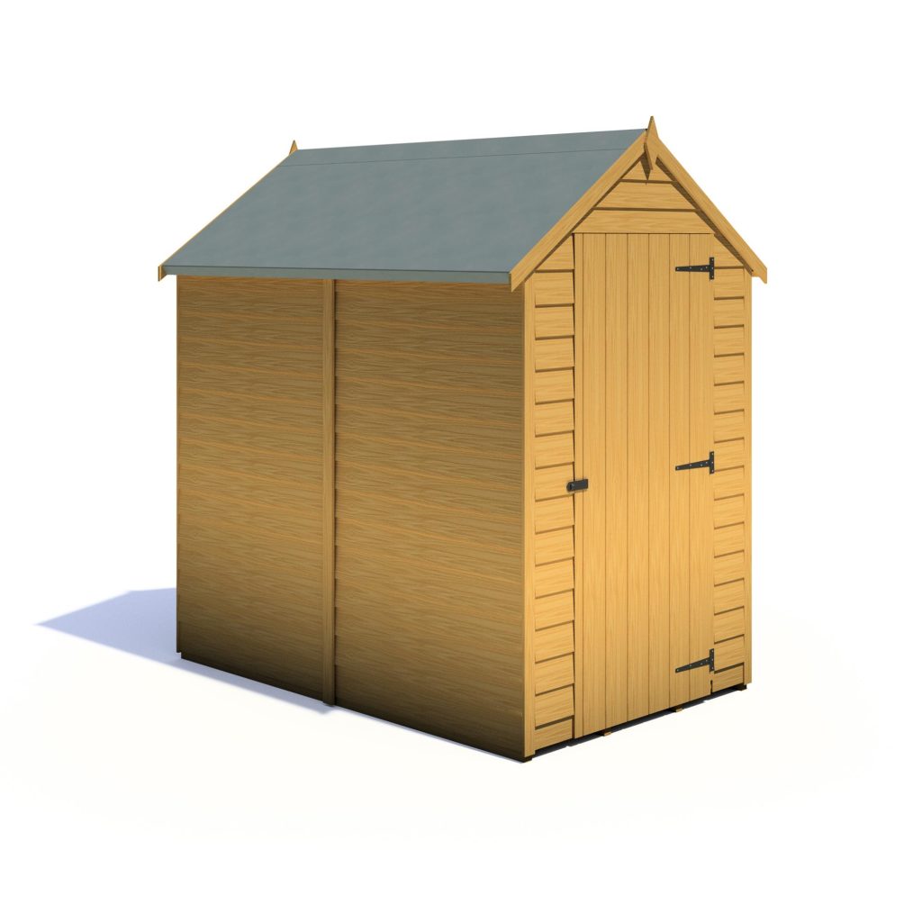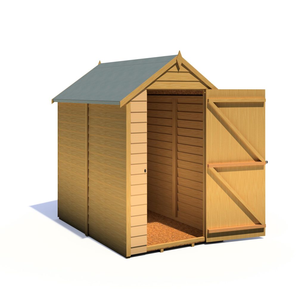 This affordable 6 x 4 Value Overlap Apex Shed offers the perfect solution for your outdoor storage needs. Featuring an overlap design that encourage water runoff. This garden building have been factory dip treated.
