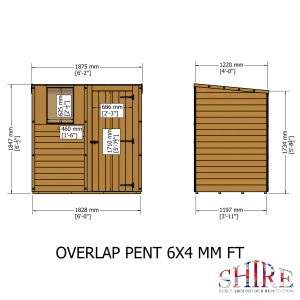 6 x 4 Shire Overlap Pent Shed Single Door and Window