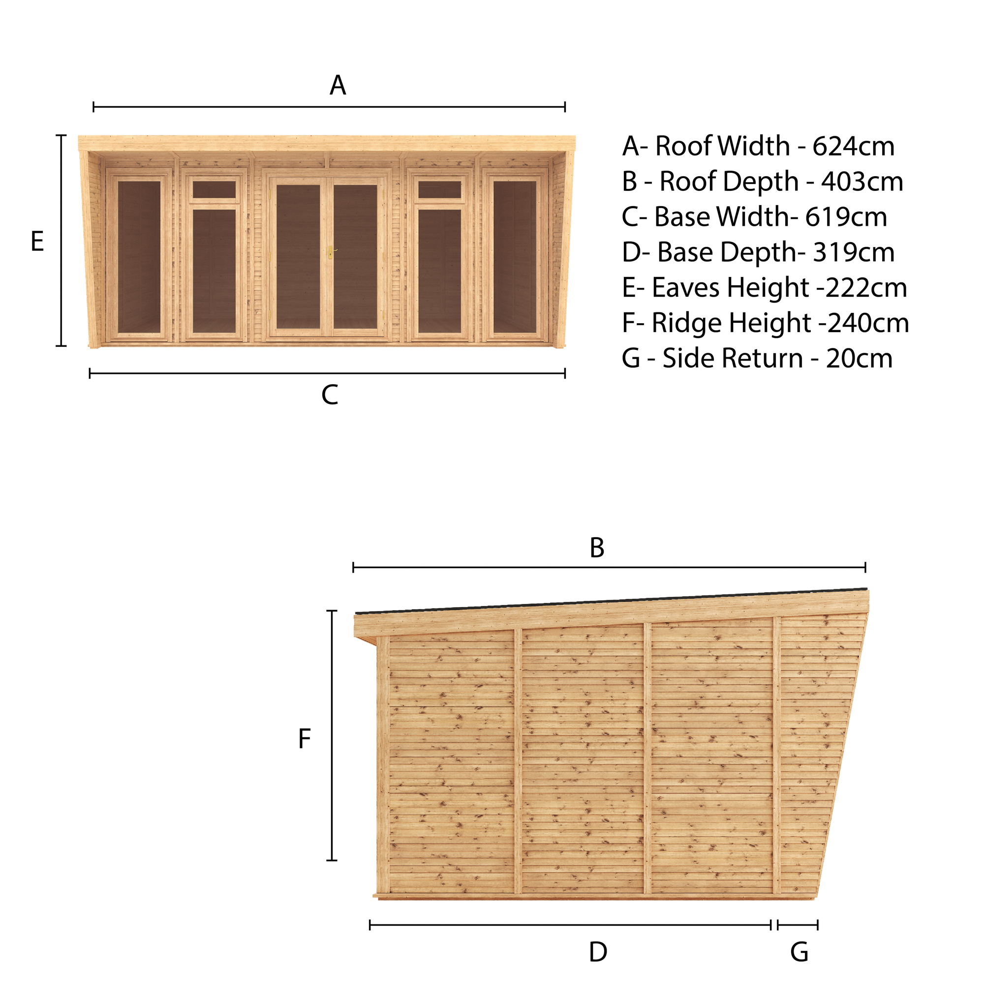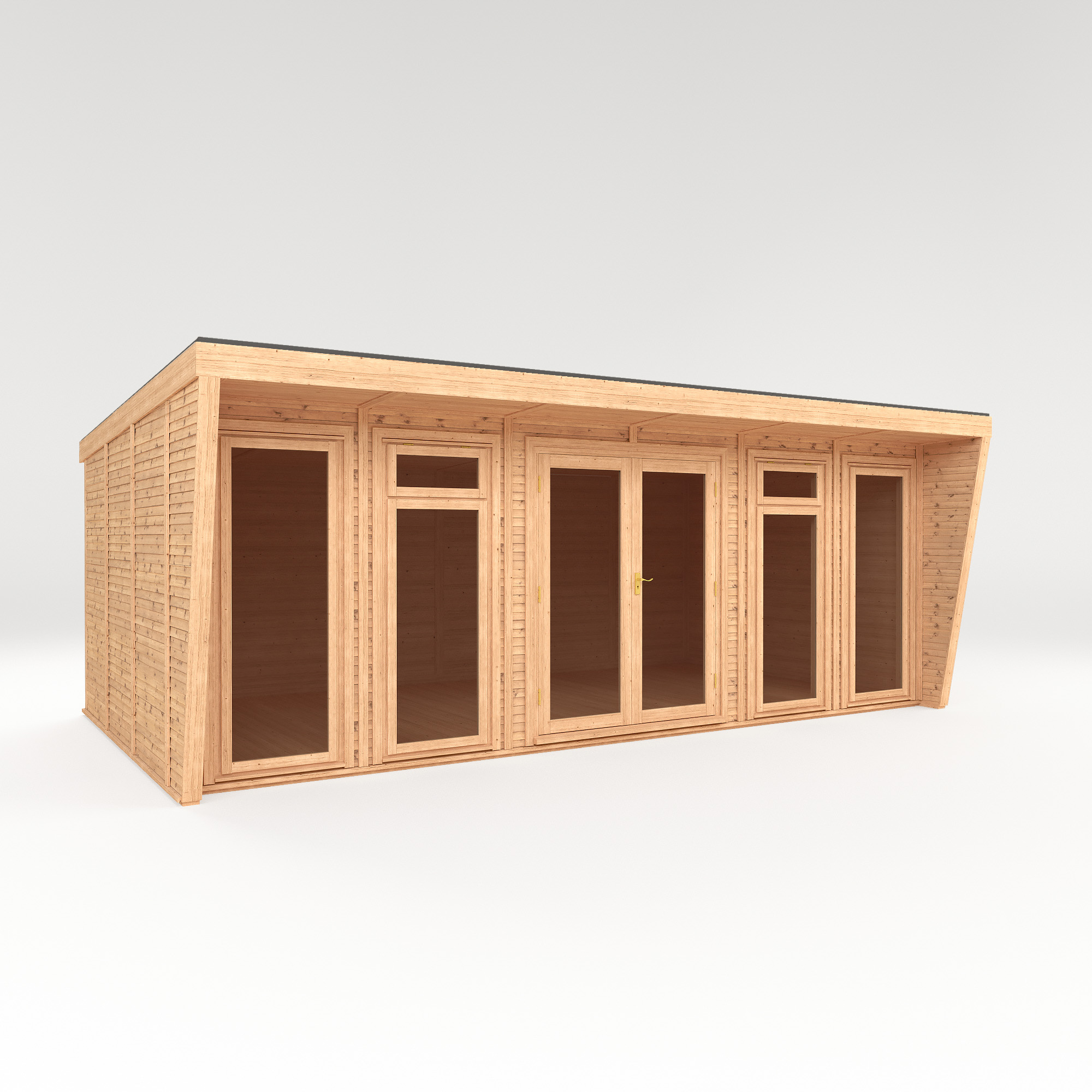 This 6m x 3m garden room boasts an architecturally stunning exterior, with clean angles and a geometric shape. Our unique wing design creates an ultra-modern and stylish aesthetic, guaranteed to become a feature within your garden. The wings create a sheltered porch to the front of the building, perfect for rainy days or for added shelter in the summer. Manufactured to order here in the UK by our highly skilled team, using only the highest quality materials, you can be confident in the quality.
