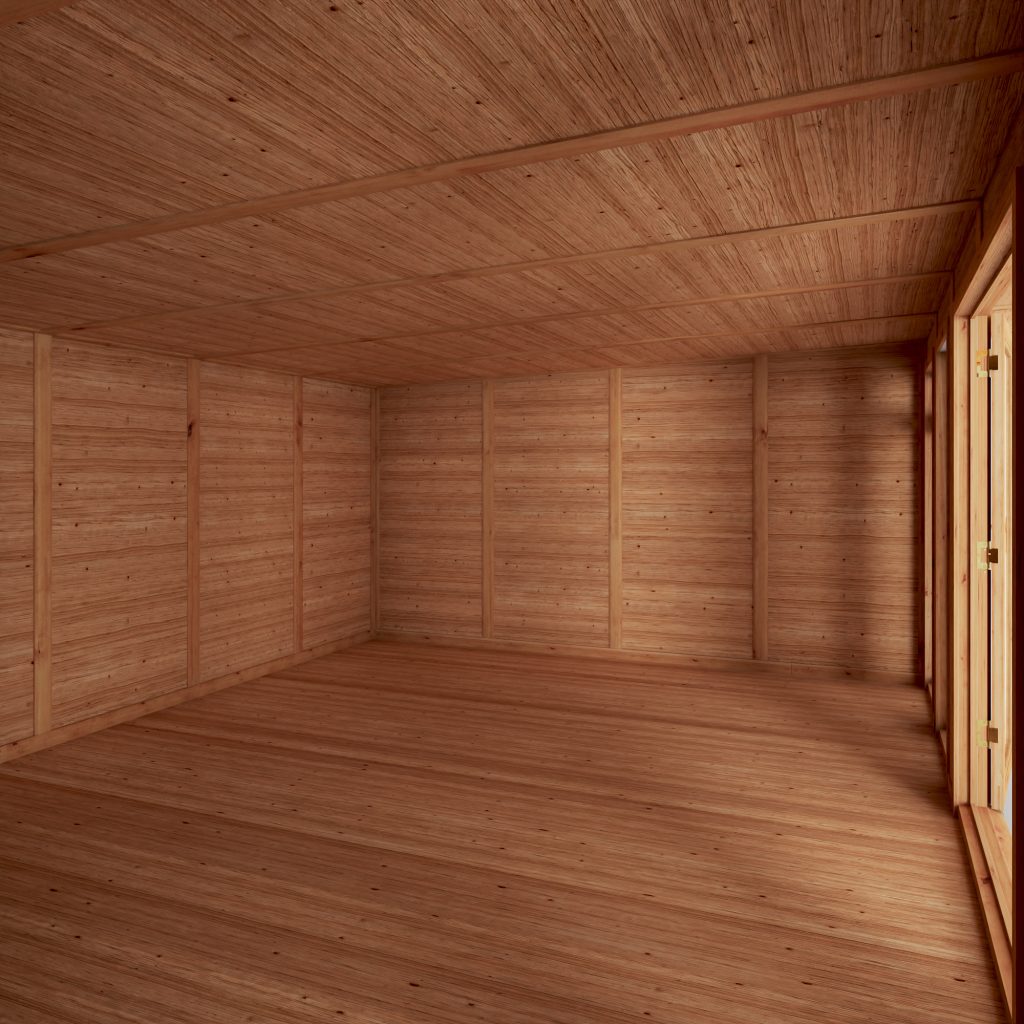 So much more than a summerhouse, this building is packed with premium features as standard. The walls, roof and floor contains Eco-quilt multi-foil insulation, which provides the same insulation as 100mm of glass wool. This combined with the double glazed windows and French doors ensures a warm, welcoming and comfortable interior all year round. The 100mm double skinned walls have also been designed with an easily removable internal panel to enable you to fit and conceal any electrics you may require – perfect for tidying away all your office cables. Finally the roof is covered with a superior waterproof rubber membrane, designed to last for 50 years!