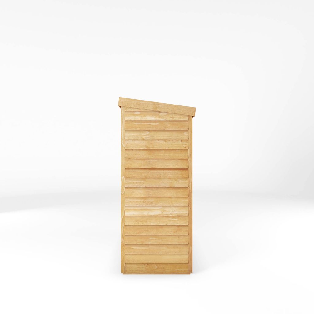 The walls of this store are made using horizontal boards that overlap each other, this traditional method of construction creates a solid panel that encourages rain water to run off the building, protecting your stored possessions from the elements. Solid sheet board is used to form the floor and roof, a durable material that is made up of several layers of tightly compacted oriented strands. Solid sheet board is perfect for everyday use and general storage.