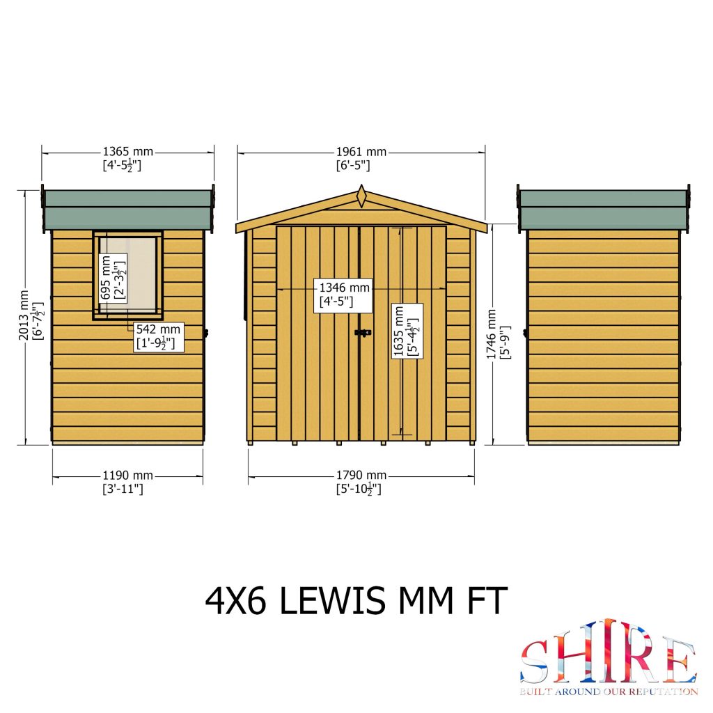 6×4 Shire Lewis Shiplap Double Door Apex Wooden Shed