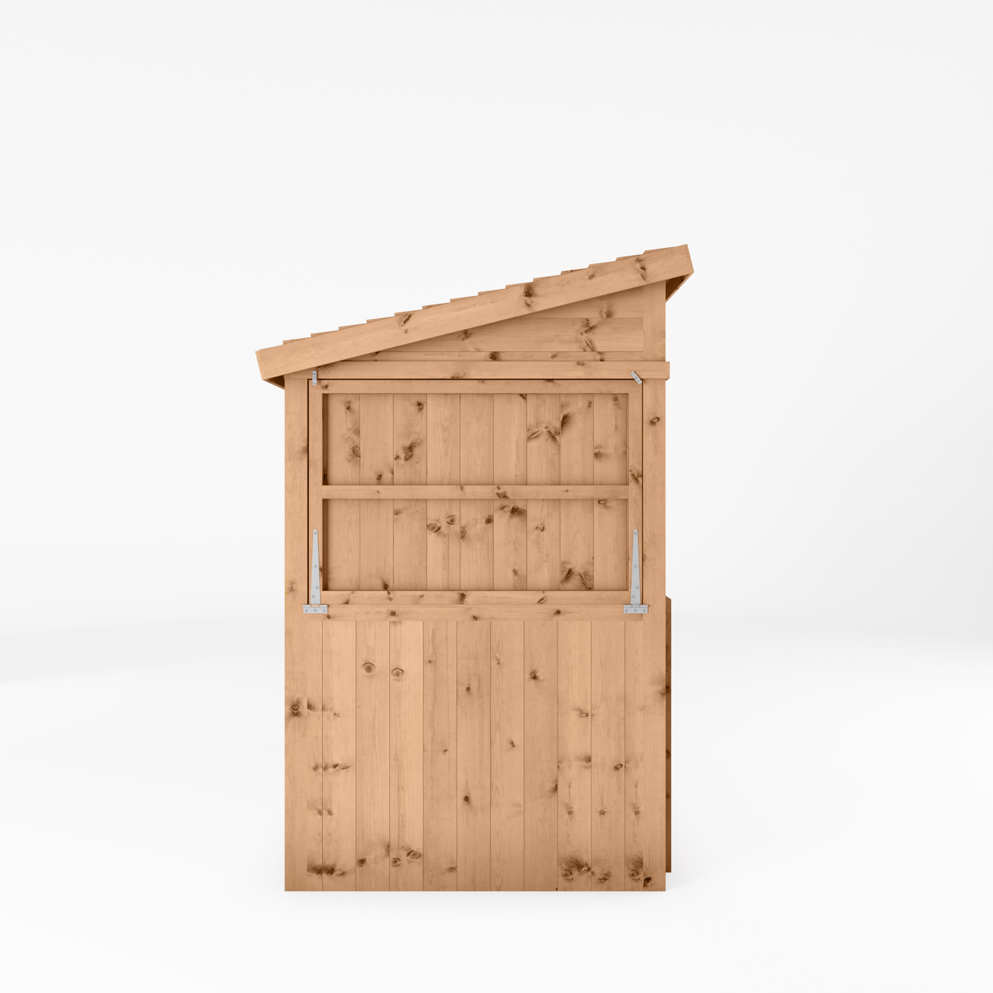 We manufacture this outdoor bar here in the UK, using pressure treated 12mm tongue and groove boards with a thick, 44mm x 44mm frame. Not only does that make for a robust, strong and long-lasting build, it looks great too! The roof is formed using overlapping timber boards that are nailed to an internal frame. Boasting a contemporary pent roof design, rainwater will simply run off the back of the building, to keep the inside of the bar dry and to avoid any water build-ups.
