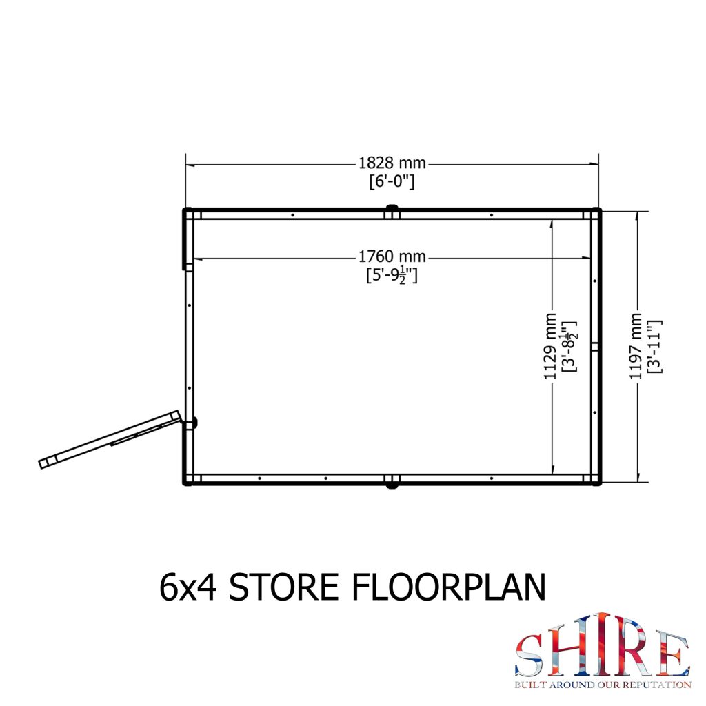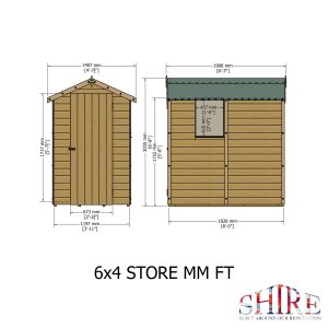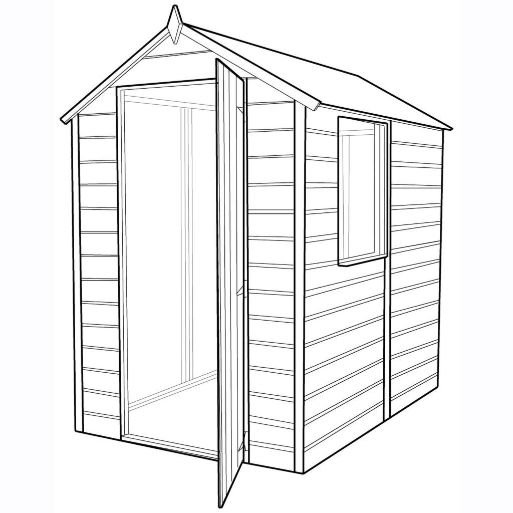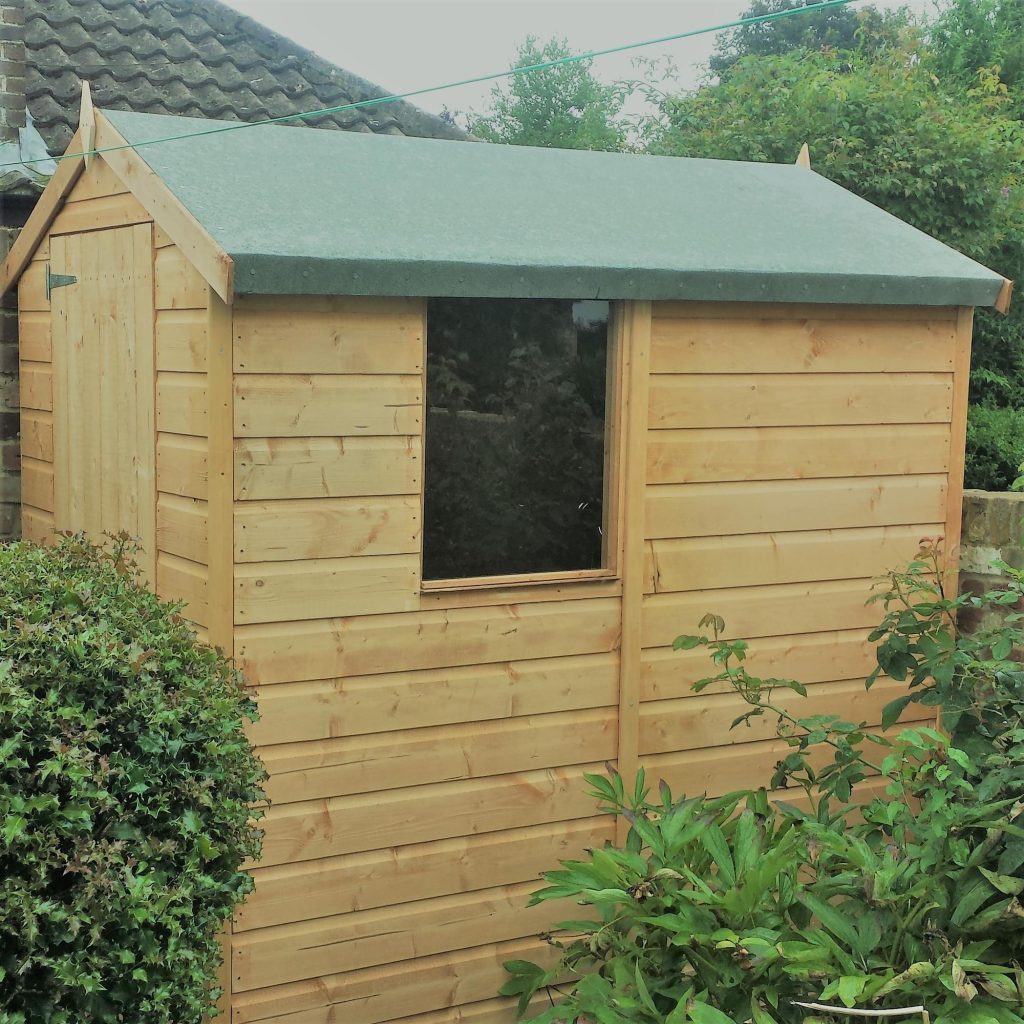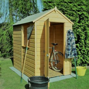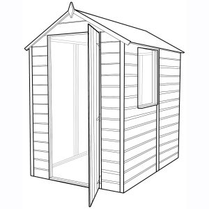 This is an attractive and well made British shed featuring high grade 12mm shiplap tongue and groove cladding and sturdy 34mm thick framing. The single door is in the 4′ gable providing easy access for bicycles or lawn mowers. There is a fixed window for added light which can go either side. The Shetland shed is ideal for storing your gardening tools or even a as a small potting shed. Both roof and floor are solid sheet OSB boards. The door is secured by a hasp and staple ready for your own padlock. The shed is pressure treated with a preservative base coat ready for your own top coat of paint or stain. Allowance should be made for the roof overhang and for access around the outside during construction and subsequent treatment.