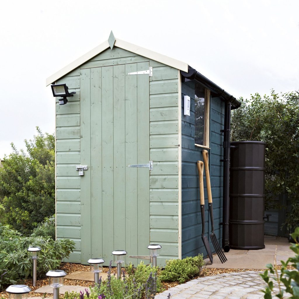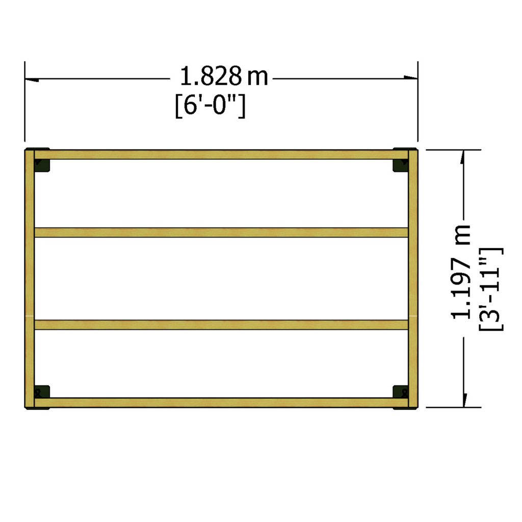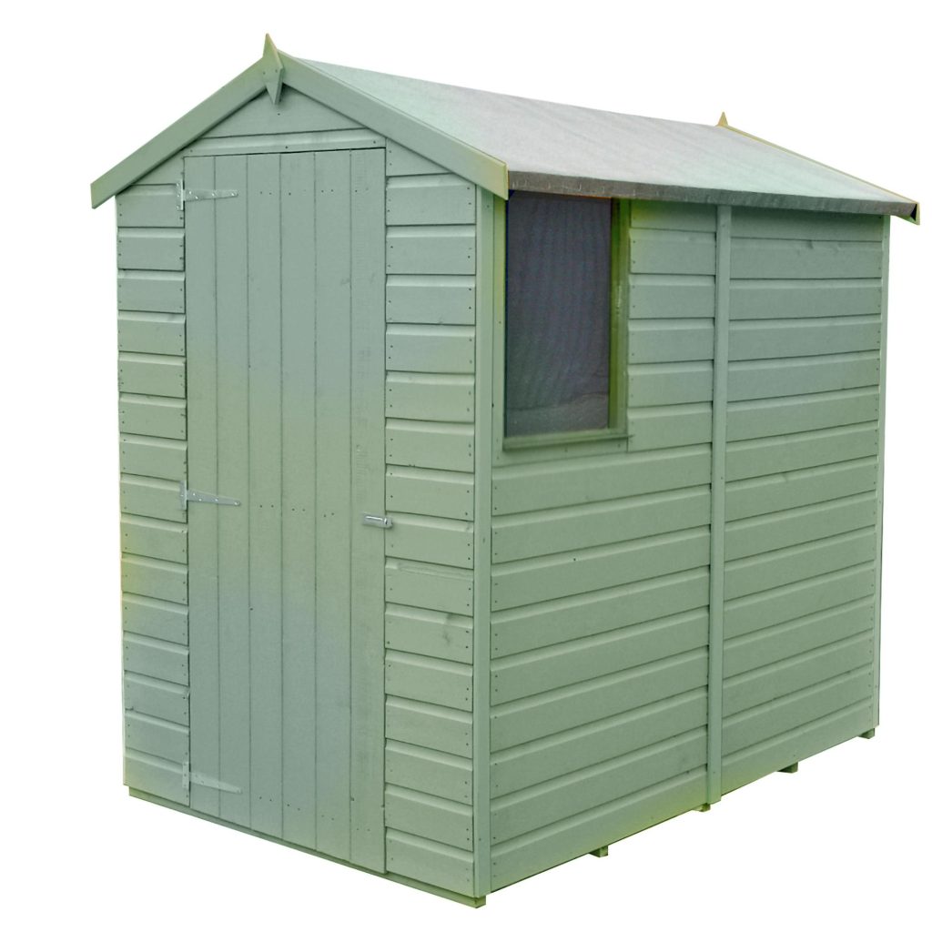 This is an attractive and well made British shed featuring high grade 12mm shiplap tongue and groove cladding and sturdy 34mm thick framing. The single door is in the 4′ gable providing easy access for bicycles or lawn mowers. There is a fixed window for added light which can go either side. The Shetland shed is ideal for storing your gardening tools or even a as a small potting shed. Both roof and floor are solid sheet OSB boards. The door is secured by a hasp and staple ready for your own padlock. The shed is pressure treated with a preservative base coat ready for your own top coat of paint or stain. Allowance should be made for the roof overhang and for access around the outside during construction and subsequent treatment.
