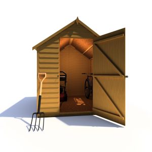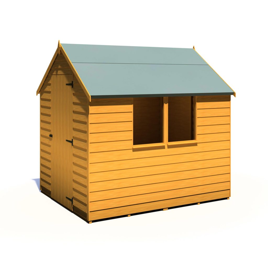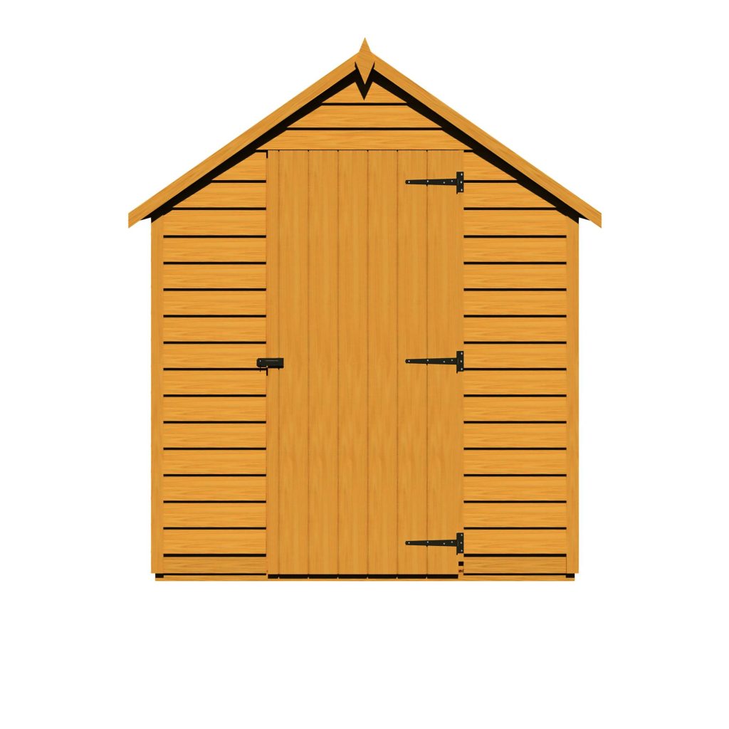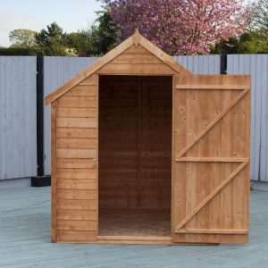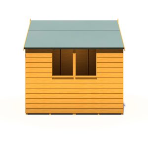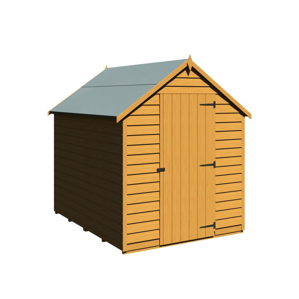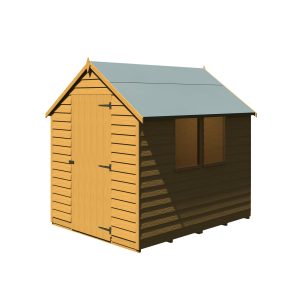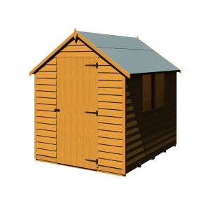 This Overlap shed range offers a great value storage space for your garden. The shed has a high roofline and a quality build setting itself apart from competition. This Garden Buildings features two fixed styrene glazed windows offering natural light to enter inside the building. The rigid 34mm square frame and high quality rustic overlap board makes the shed strong and sturdy. These quality sheds have a strong ledged single door with the roof and floor constructed of solid sheet materials giving the shed a durable structure. The Apex roof is shielded from wood rot or fungal decay by the supplied mineral roofing felt.