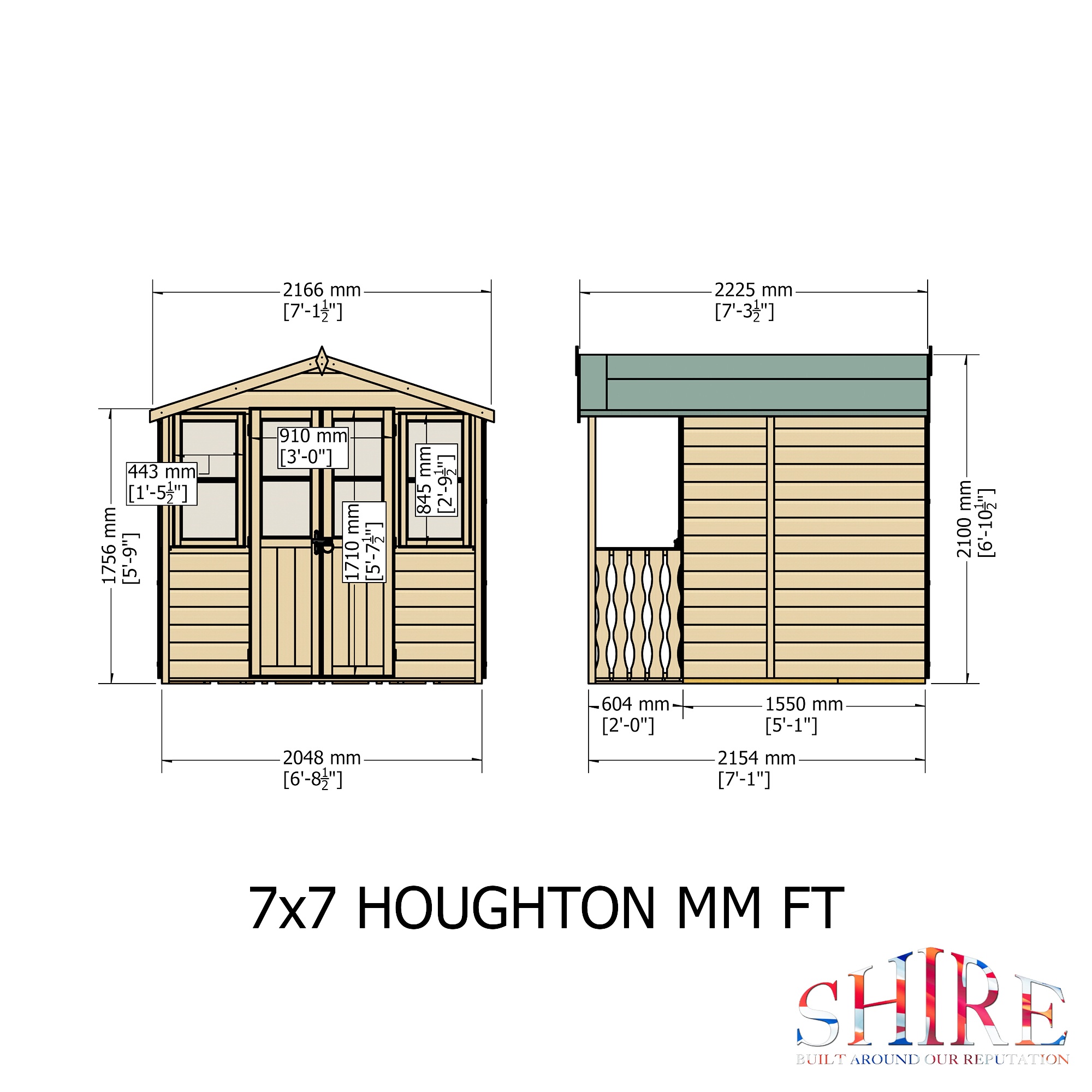 7 x 7 Shire Houghton Apex Summerhouse with Veranda and Glass Windows