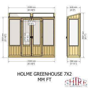 7×2 Shire Holme Wooden Mini Greenhouse Toughened Glass