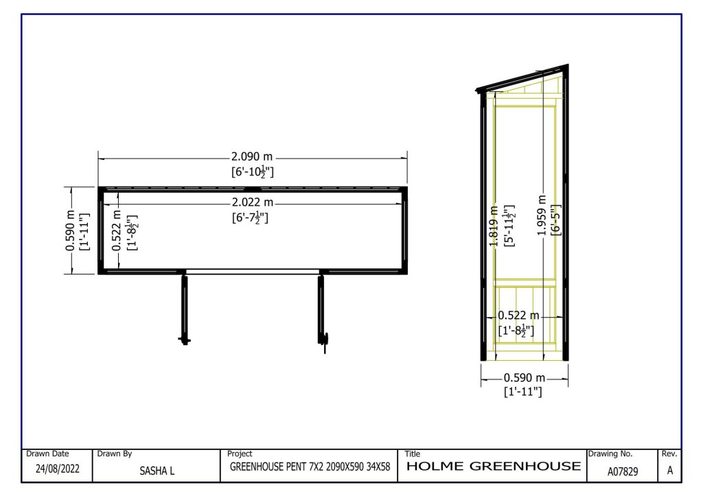 The Holme is a very practical lean to greenhouse which will provide all the advantages of a timber greenhouse in a compact size to suit many locations. The low wooden T&G panels add a very traditional detail to this functional design. The Holme will make a feature of a plain wall as well as being a great asset if you “Grow Your Own”. The greenhouse is glazed with toughened glass and has a double door for easy access, fitted with a traditional gate latch handle. The roof can be opened on a hot day to provide excellent ventilation. As usual with a greenhouse, no floor is supplied and the greenhouse sits on a pressure treated base rail. Manufactured in the UK from high grade Northern European, FSC certified timber and finished with a honey brown basecoat preservative treatment ready for your own top coat of wood paint or stain following assembly. All fixings and assembly instructions are provided. Imperial measurements are rounded so please refer to the metric sizes for accuracy. Allowance should be made for the roof overhang and for access around the outside during construction and subsequent treatment. Following your order, you will be sent a link to choose your delivery day. On the morning of delivery you will also receive live tracking information. Before you assemble your greenhouse , you will need a base which is flat and level to a sufficient size. Grass, soil or gravel are not sufficient as they will move with the weight of a building.