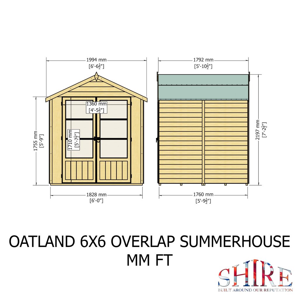 The very popular and practical Oatland Summerhouse is superb value for money. It is an attractive building with a rustic look which can be used for many purposes and makes a feature in the garden or on the patio. With double doors to the front giving excellent access, The Oatland is constructed from high grade overlap cladding to the walls on 34mm strong framing. Manufactured in the UK from high grade Northern European FSC certified timber and finished with a honey brown basecoat preservative treatment ready for your own top coat of stain or paint. Imperial measurements are rounded so please refer to the metric sizes for accuracy. Allowance should be made for the roof overhang and for access around the outside during construction and subsequent treatment.