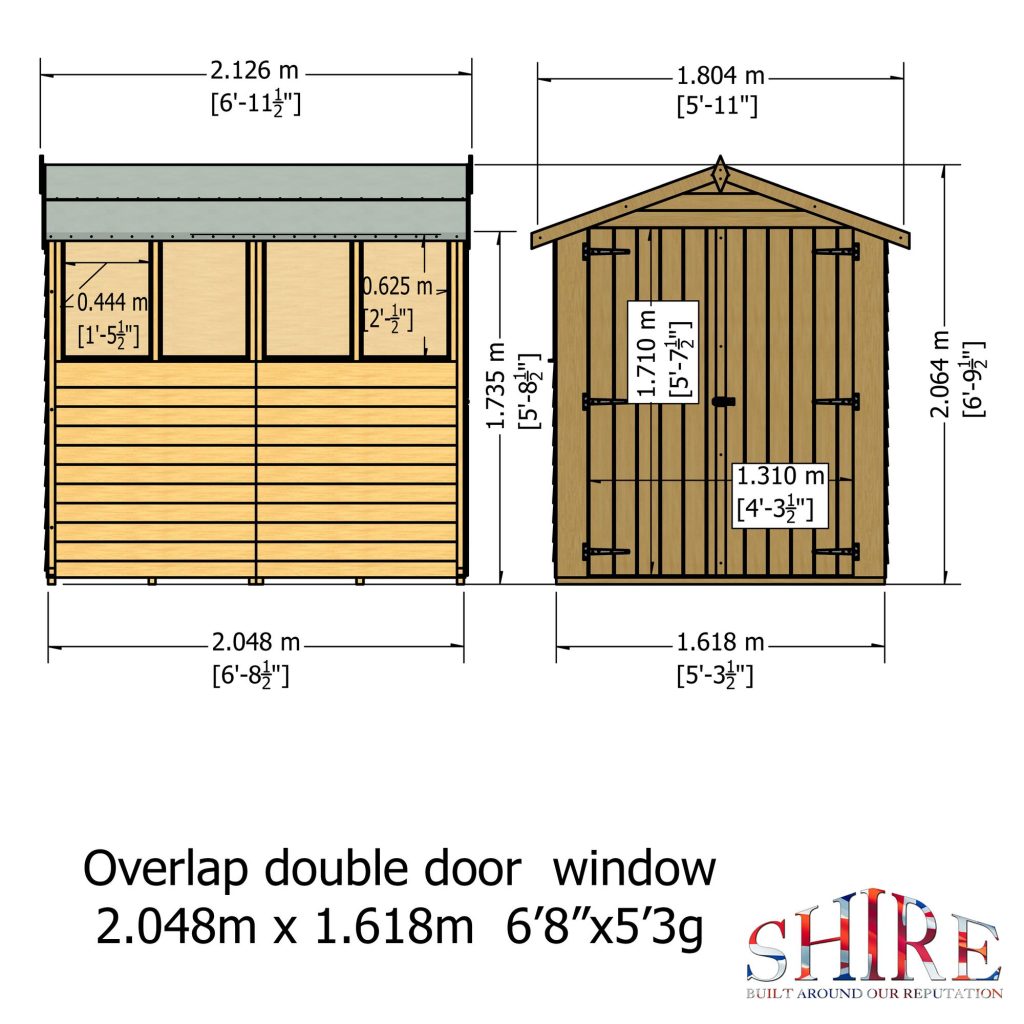 7×6 Shire Overlap Double Doors Apex Wooden Shed