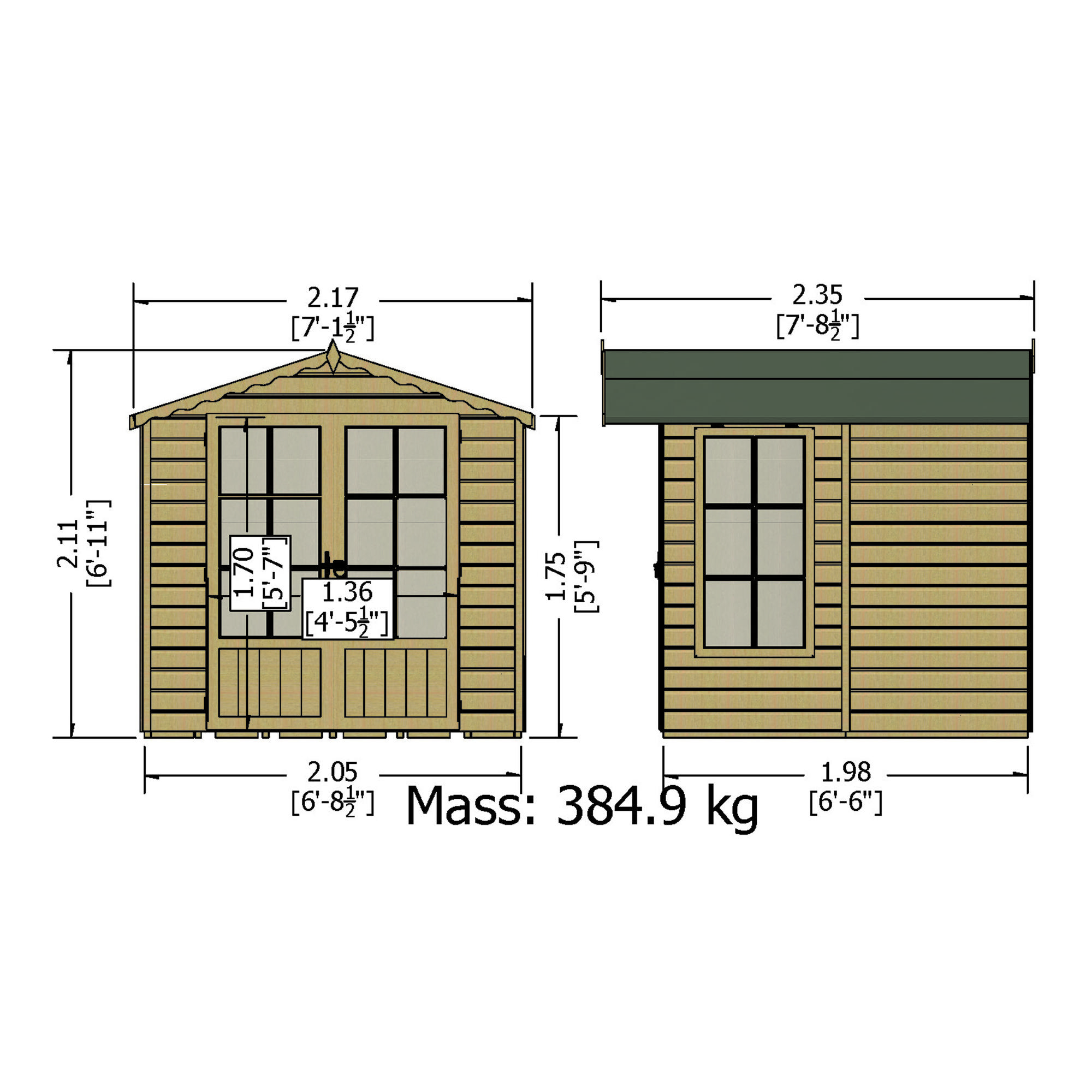 7×8 Shire Buckingham Traditional Double Doors Summerhouse