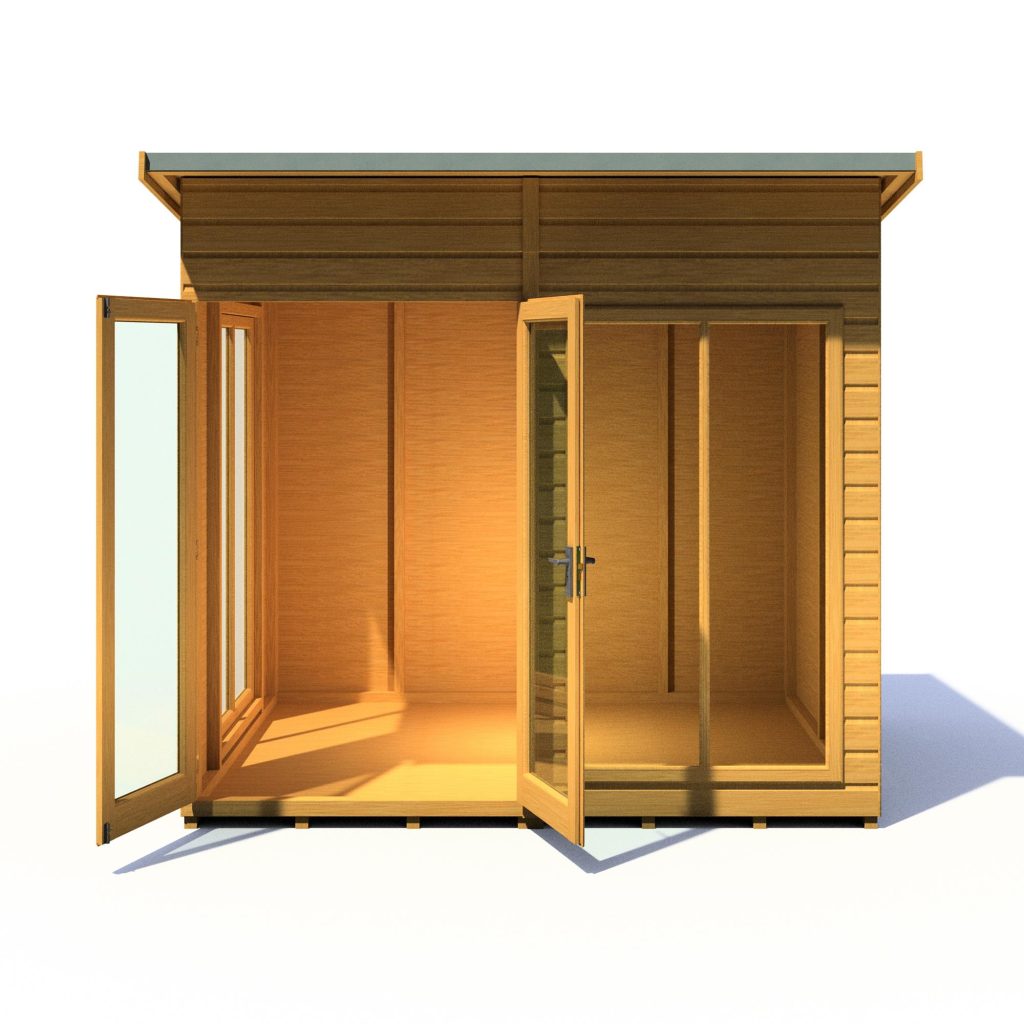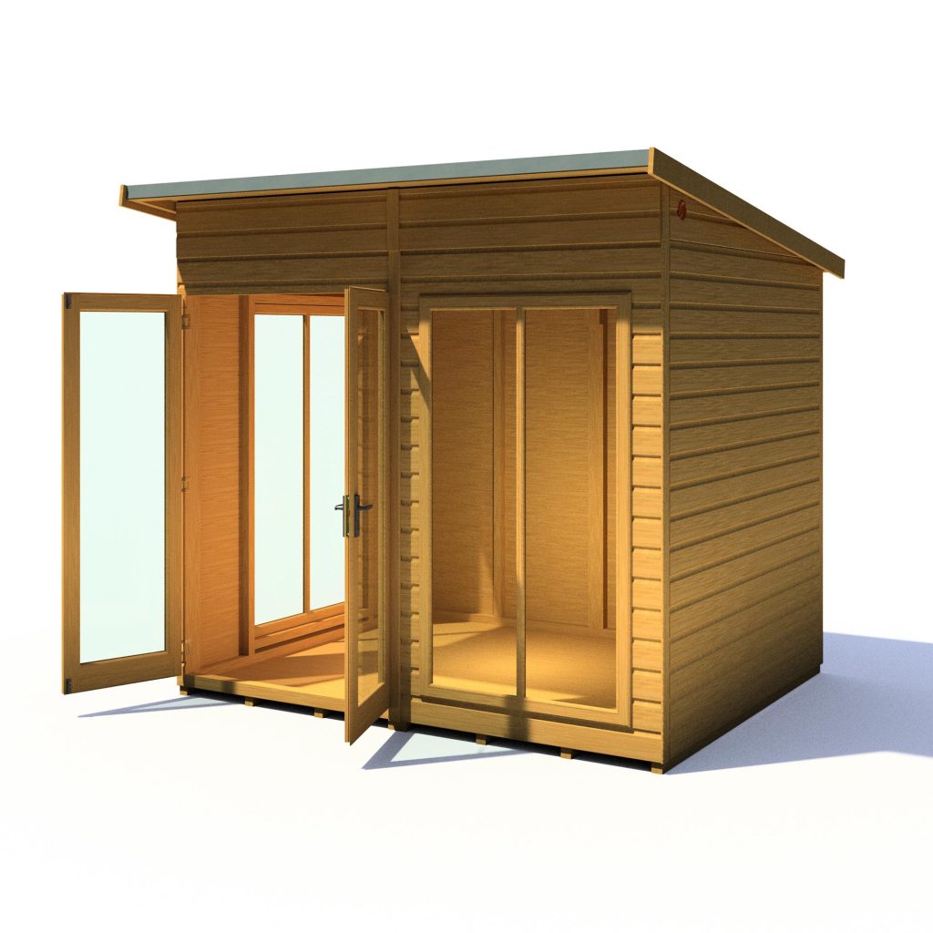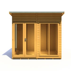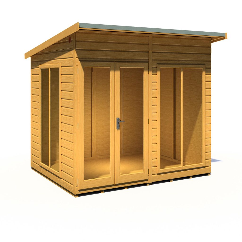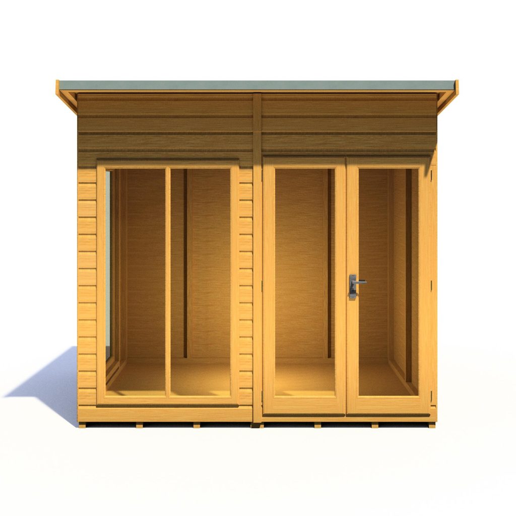 Imagine enjoying lazy summer evenings or sun-soaked meals in your own stylish haven. The 8 x 6 Lela Summerhouse offers the perfect escape, transforming your garden into an extension of your living space. This modern retreat boasts a comfortable, spacious interior with an impressive 7ft eaves height, creating a relaxed and airy atmosphere.