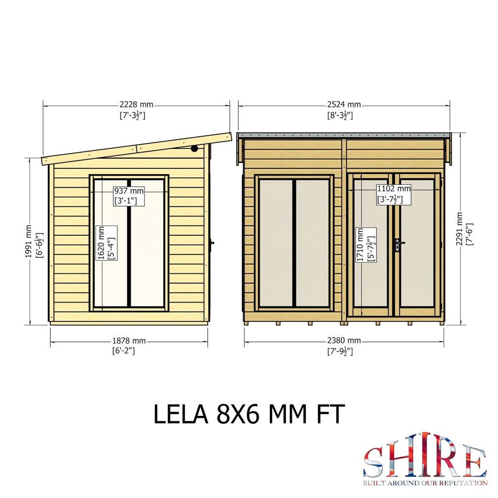 8 x 6 Shire Lela Summerhouse Shiplap T&G Double Door Secure Lock