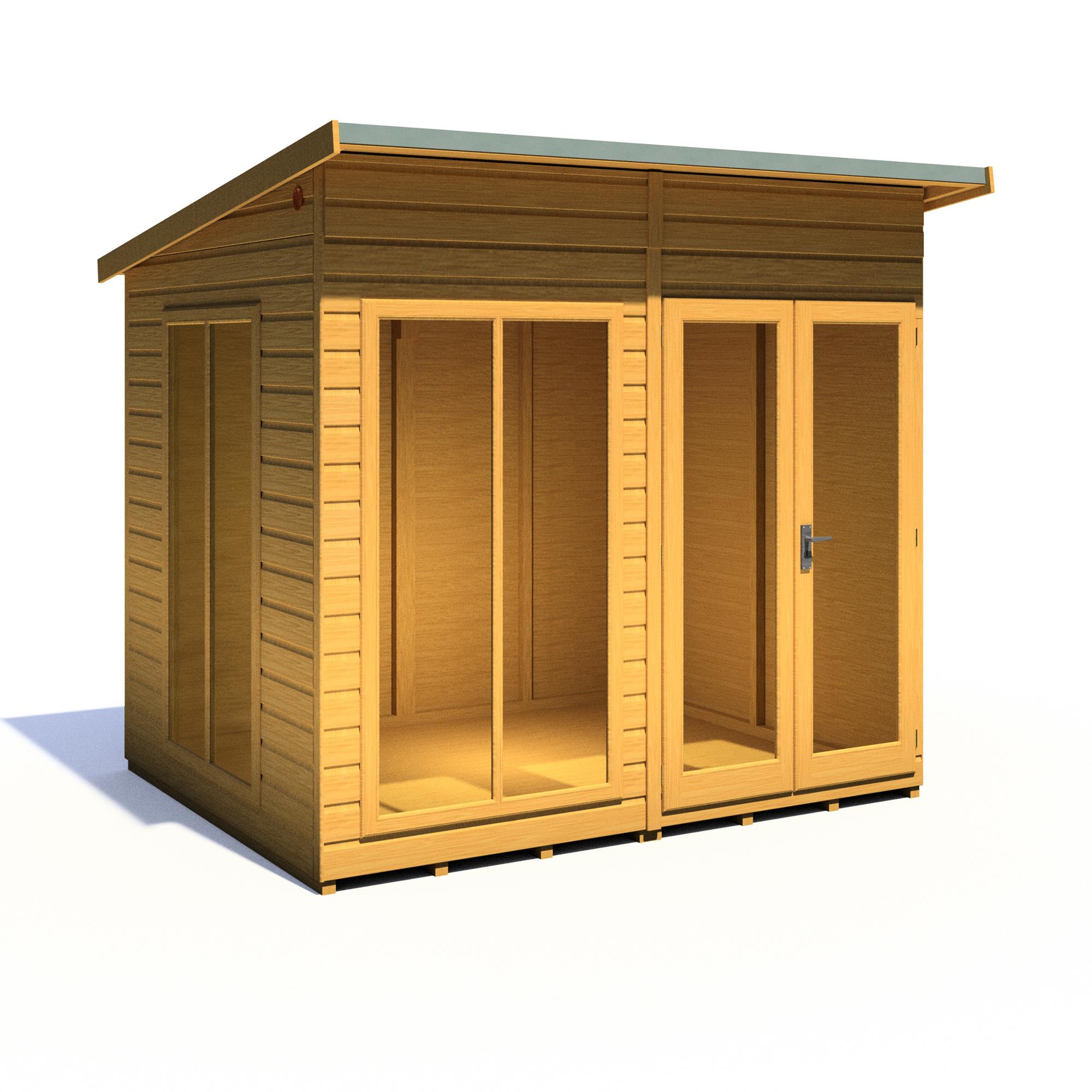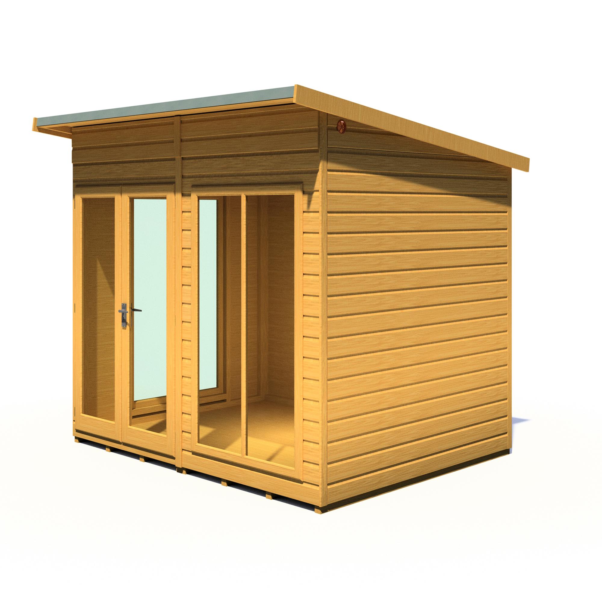Imagine enjoying lazy summer evenings or sun-soaked meals in your own stylish haven. The 8 x 6 Lela Summerhouse offers the perfect escape, transforming your garden into an extension of your living space. This modern retreat boasts a comfortable, spacious interior with an impressive 7ft eaves height, creating a relaxed and airy atmosphere.