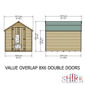 8 x 6 Shire Overlap Apex Shed Double Doors