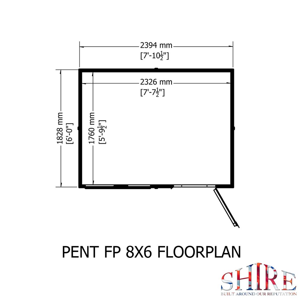 8 x 6 Shire Pent Shed with Shiplap T&G and Double Doors